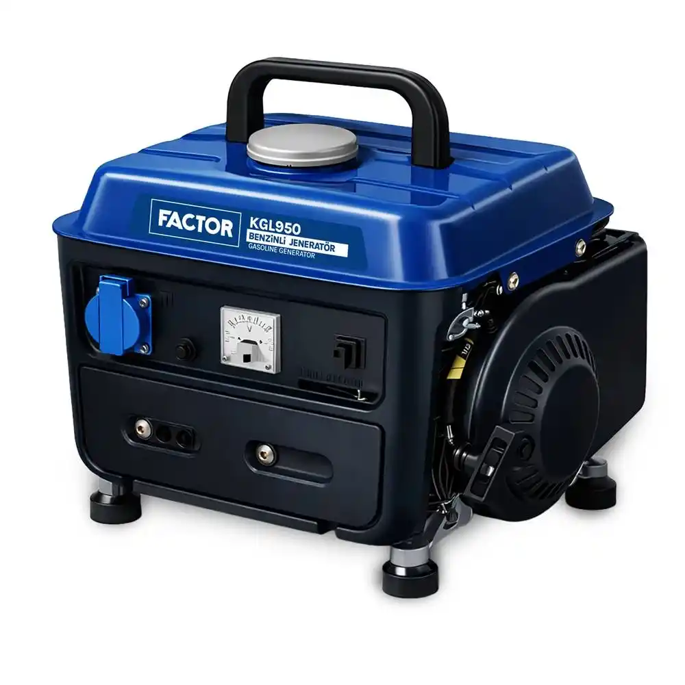 Factor KGL950 0.8 kW benzinli jeneratör; kamp, bahçe ve acil durum aydınlatmaları için hafif, bakır sargılı ve yüksek verimli taşınabilir güç kaynağıdır.