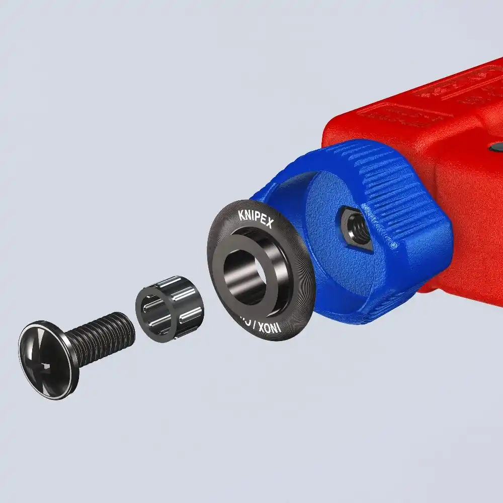 Knipex TubiX® Boru Kesici, 3 mm ile 30 mm arasındaki borularda kesim yapılmasına olanak tanır; boru çapı ölçek ile önceden ayarlanabilir ve yaylı kesme tekerleği ile boruya takılır.
