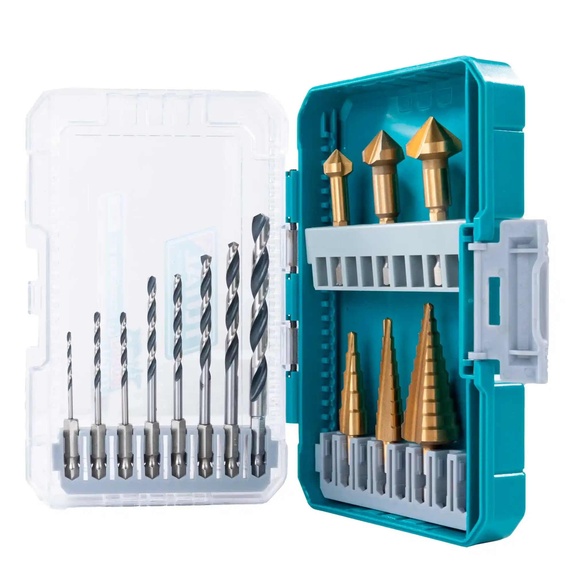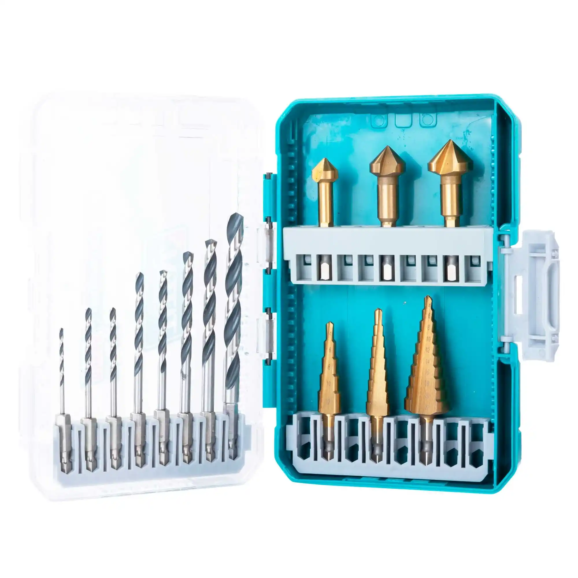 3 adet kademeli matkap ucu: 4-12mm 5 kademeli 4-12mm 9 kademeli 4-22mm 10 kademeli