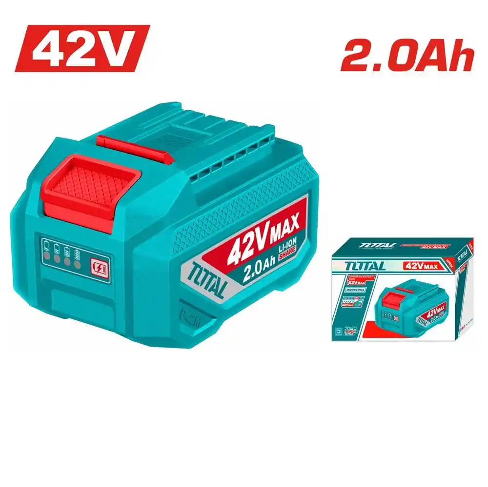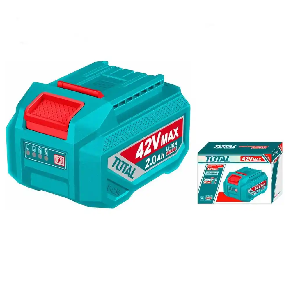 Total TFBLI42201E; 42V yüksek voltaj platformuna sahip profesyonel el aletlerine enerji sağlayan, lityum iyon (Li-ion) hücre teknolojisiyle donatılmış, yüksek yoğunluklu yedek aküdür.