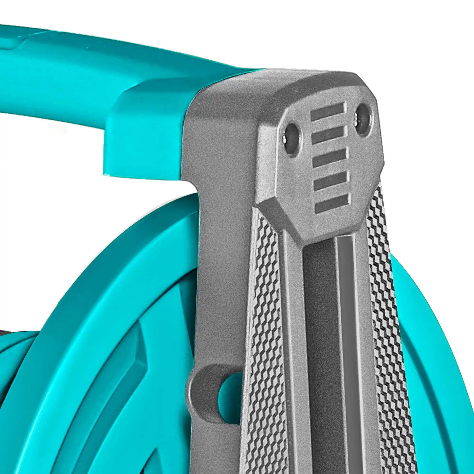 Total THHR20124; 20 metre uzunluğundaki 1/2 inç hortumu kompakt bir tasarımda sunan, hem taşınabilir hem de duvara monte edilebilir yapıda olan profesyonel bir hortum yönetim sistemidir.