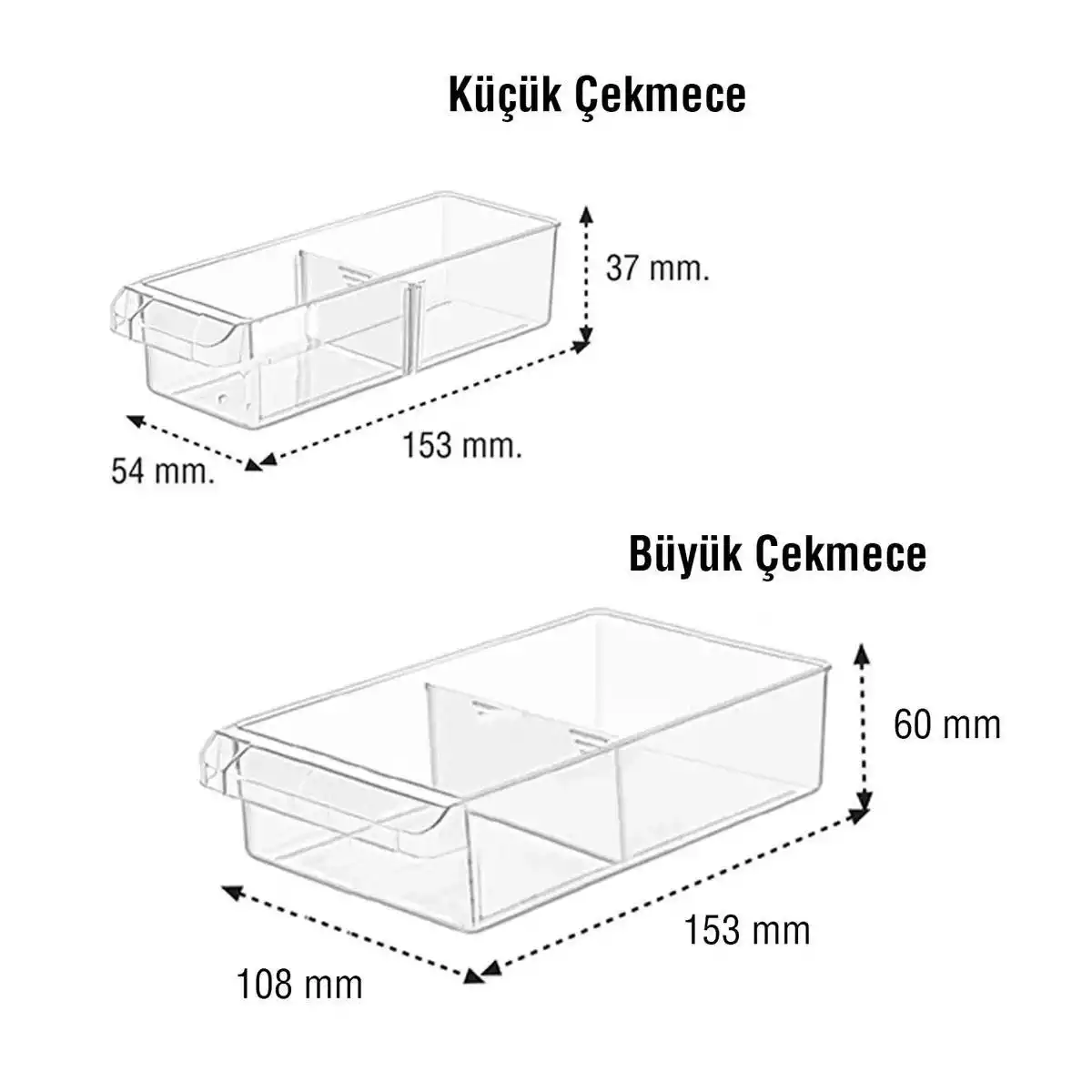 Bölmeli Çekmeceler; Çekmece aralarında söküp takılabilen bölmeler bulunmaktadır. Bu sayede Çekmecenin boyutunu büyütüp küçülte bilirsiniz,