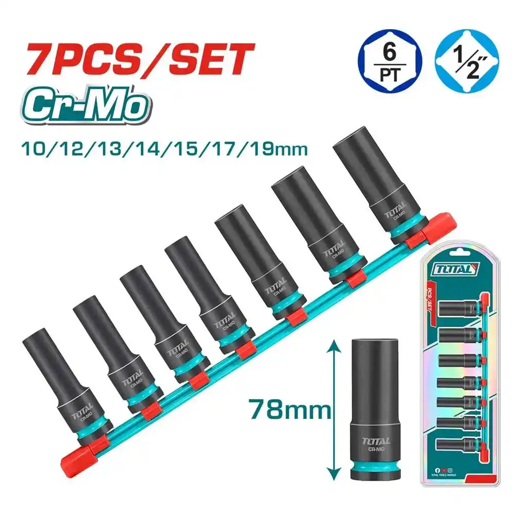 Derin yuvalardaki bijon engellerini aşmak ve profesyonel gücünüzü sergilemek için Total 7 Parça Derin Darbeli Lokma Setini hemen sepetinize ekleyin!