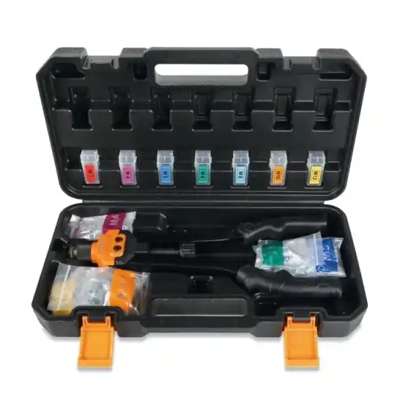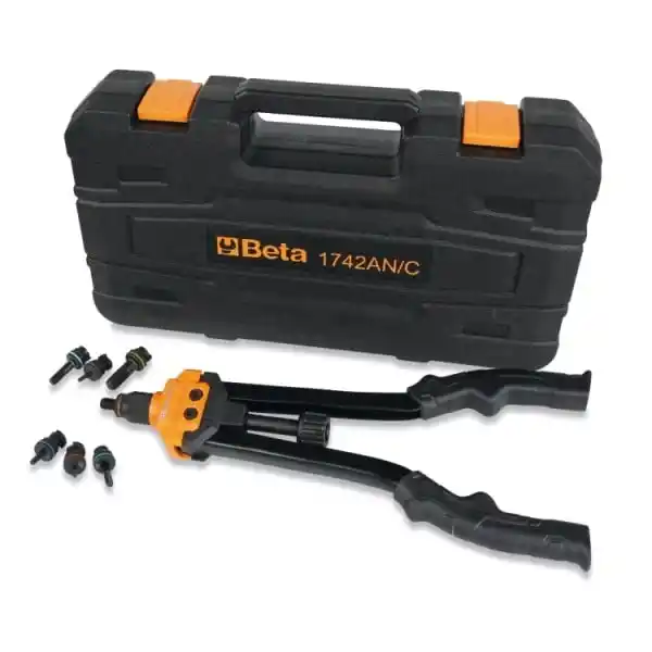 Ağır hizmet tipi perçinleme pensesi 1742AN, kutuda 80 çelik dişli uçla birlikte