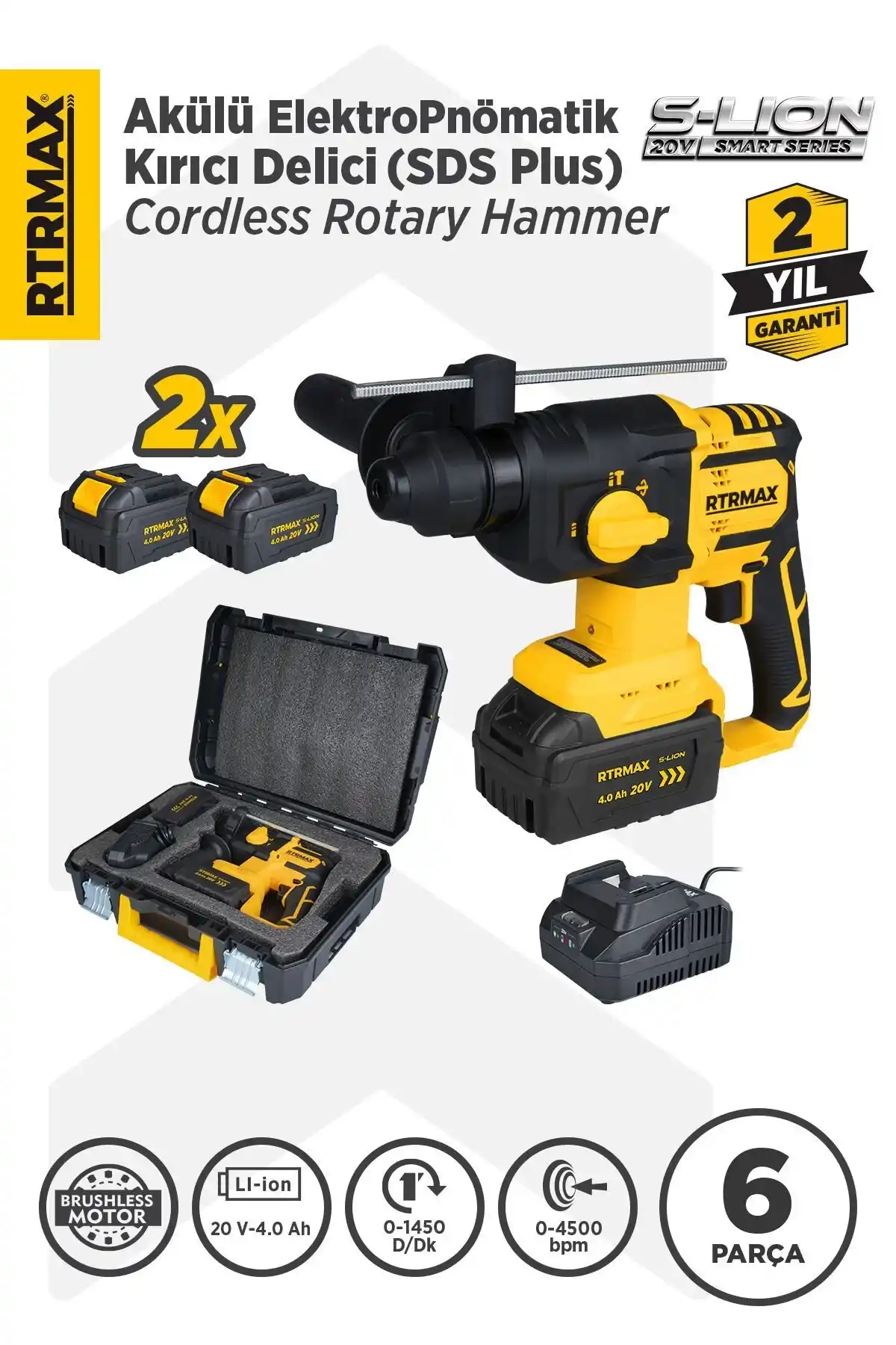 1 Adet Rtrmax RTS5040 Akülü Kırıcı Delici 2x4 Ah 20V Çift Akü