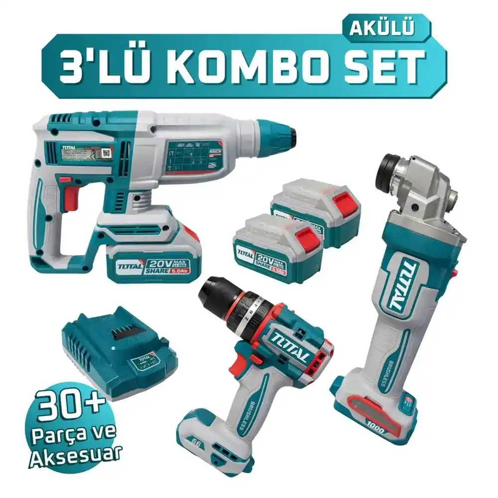 Total TOSLI241198E Akülü Kırıcı Delici+Avuç Taşlama+Darbeli Matkap Seti