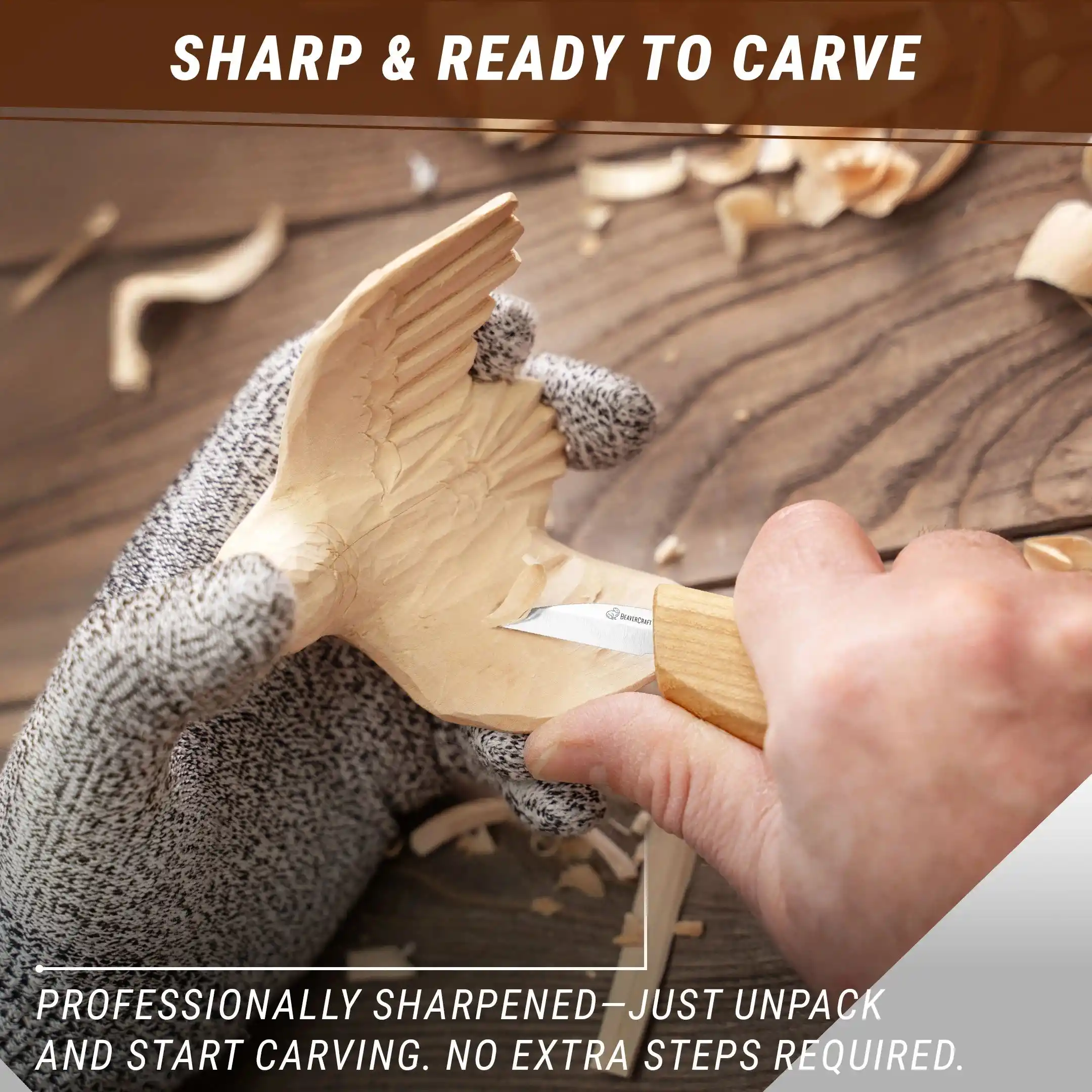 ● Dişbudak ağacı sapı, ergonomik yapısıyla uzun süreli çalışmalarda rahat bir kavrama sağlar ve el yorgunluğunu en aza indirir. Hem sağ hem de sol elini kullanan oymacılar için uygundur.