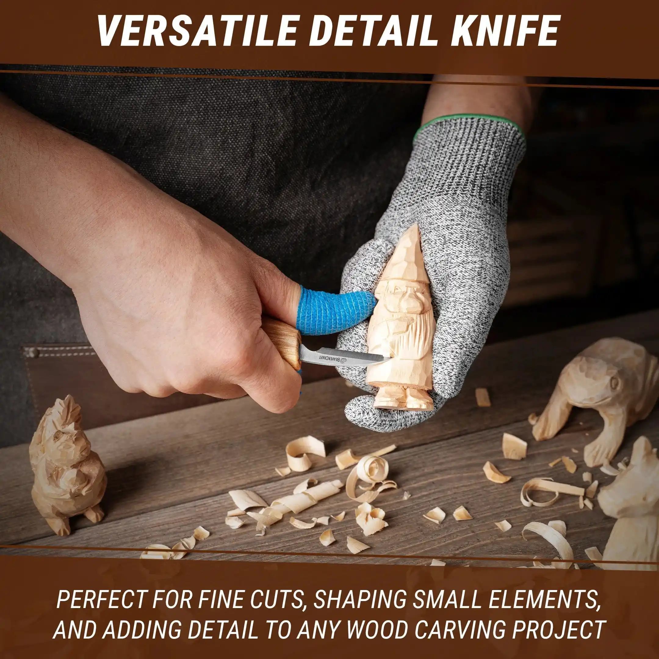 ● Sapın kavisli tasarımı, bıçağın manevra kabiliyetini artırarak, hem sağ hem de sol elini kullanan oymacılar için konforlu hale getirir.