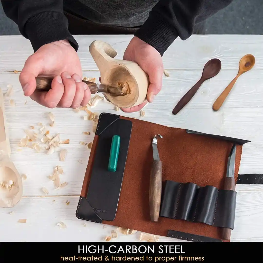 ● Premium ahşap kaşık oyma seti, kaşık, kuksa ve kase yapımı için özel olarak hazırlanmış, ceviz saplı yüksek kaliteli bir ahşap oyma takımıdır.