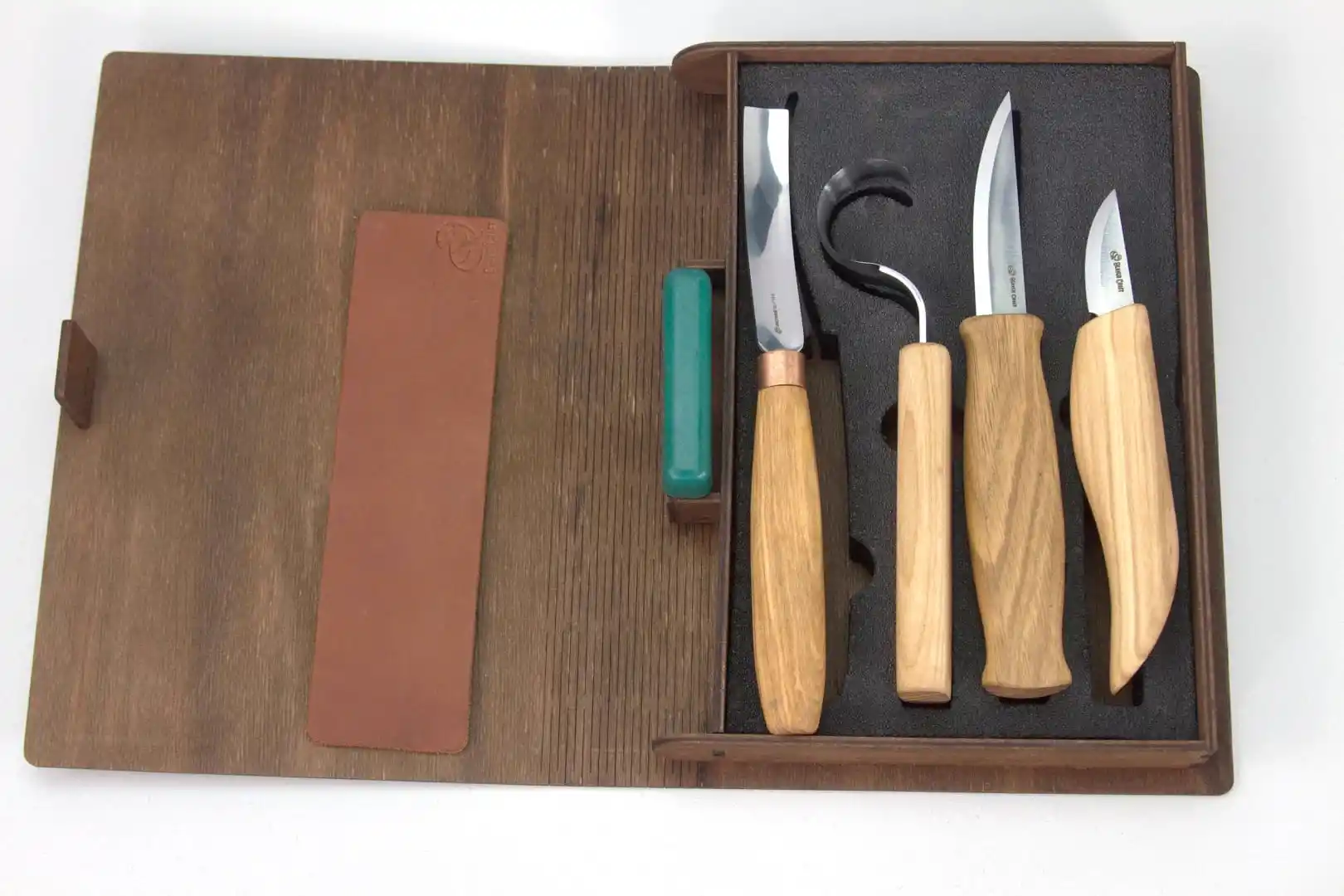 ● S43 Kaşık ve Kuksa Oyma Seti, yuvarlak yüzeylerin oyulması için özel olarak tasarlanmış profesyonel ahşap oyma bıçakları ve aksesuarlarından oluşan eksiksiz bir settir. Bu set ile kaşık, kuksa, kase ve bardak gibi el yapımı ürünler tasarlayabilirsiniz. Bu sette, kaşığın iç kısmını oymak için kullanılan bir kanca (kaşık) bıçağı ve bir ıskarpela ve kaşığın şeklini vermek için iki adet sloyd bıçağı bulunur.