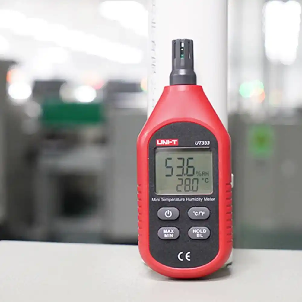 Uni-T UT333BT, ortamdaki sıcaklık ve bağıl nem değerlerini yüksek hassasiyetle ölçen ve Bluetooth 4.0 teknolojisi ile bu verileri akıllı cihazlara aktarabilen dijital bir termo-higrometredir.