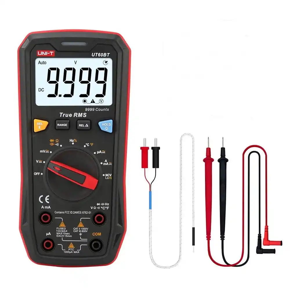 Unit UT60BT, ölçüm verilerini Bluetooth üzerinden akıllı cihazlara aktarabilen, 9999 sayım çözünürlüğe sahip ve karmaşık dalga formlarını doğru ölçen profesyonel bir True RMS akıllı multimetredir.