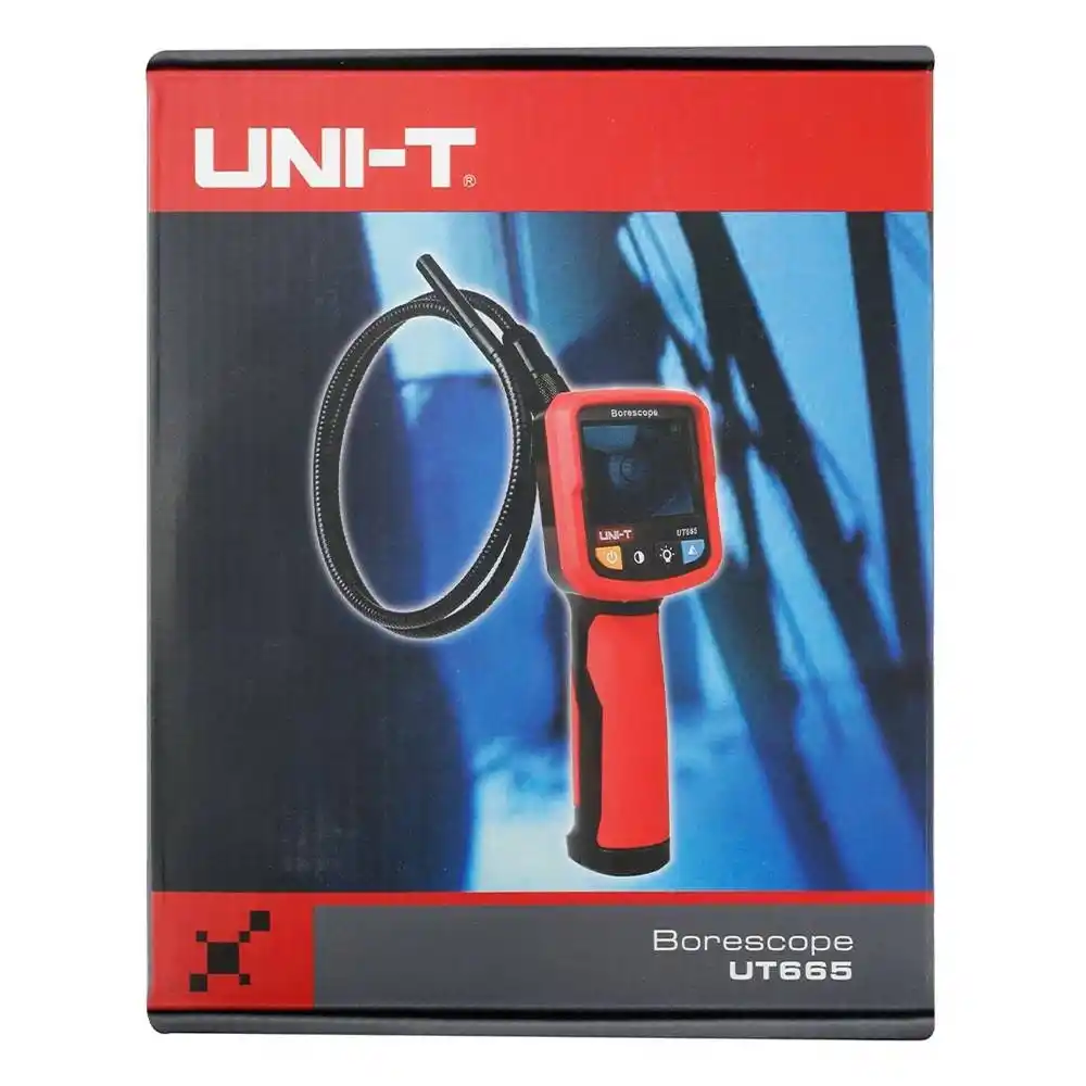 Uni-T UT665, erişilmesi imkansız dar ve karanlık bölgelerden 2.4 inç renkli ekranına gerçek zamanlı görüntü aktaran, 9 mm çapında yüksek hassasiyetli bir lens ve 1 metre esnek proba sahip endoskopik muayene cihazıdır.