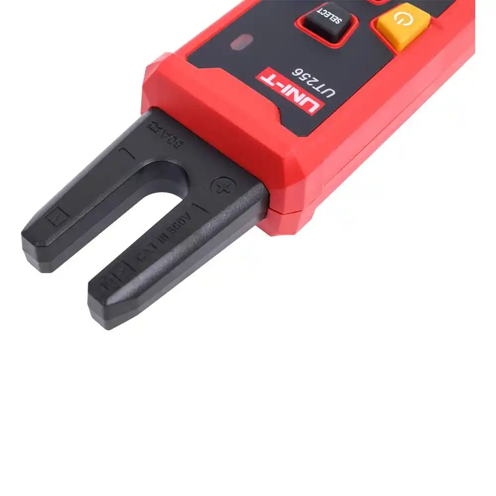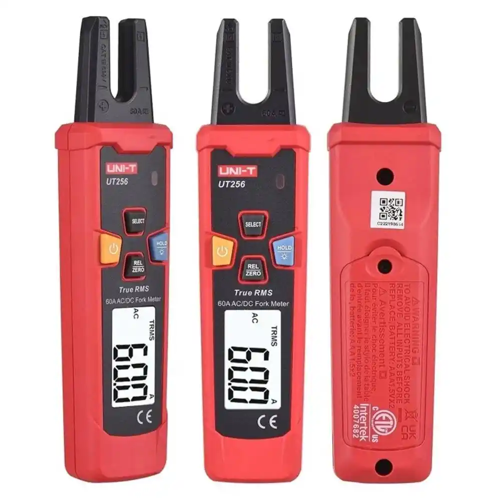 Uni-T UT256, dar kablo demetlerinde pens kovanını açmaya gerek duymadan AC ve DC akımı 60 Ampere kadar ölçebilen, True RMS teknolojisine sahip profesyonel bir çatal tipi (open-jaw) multimetredir.