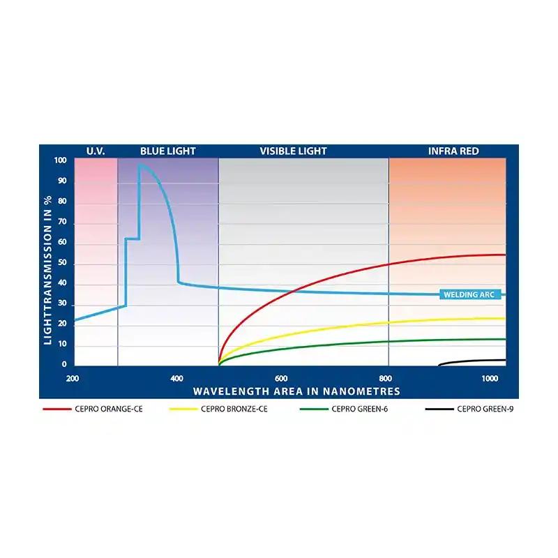 UV radyasyonunu süzme kapasitesi ve alev almaz yapısı ile Cepro Orange-Ce, sadece personeli değil, tesis içindeki diğer hassas ekipmanları da kaynak arkının yarattığı radyasyondan korur.