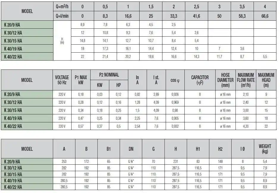 Dab K 30/15 HA Basınçlandırma Pompası-Pompamat-Mini Hidrofor Teknik Özellikler