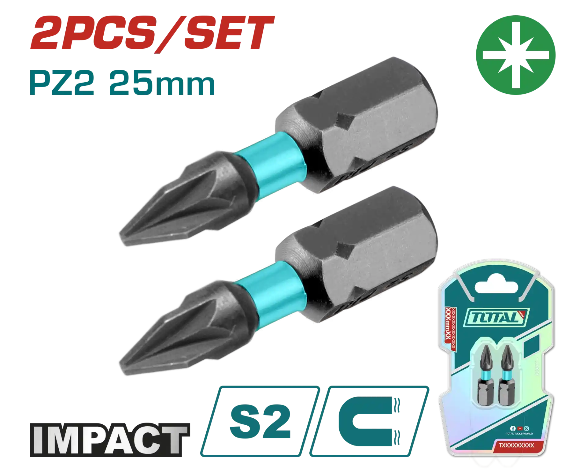 Total TACIM71PZ225 Darbeli 25mm PZ2 Bits Ucu 2 Li