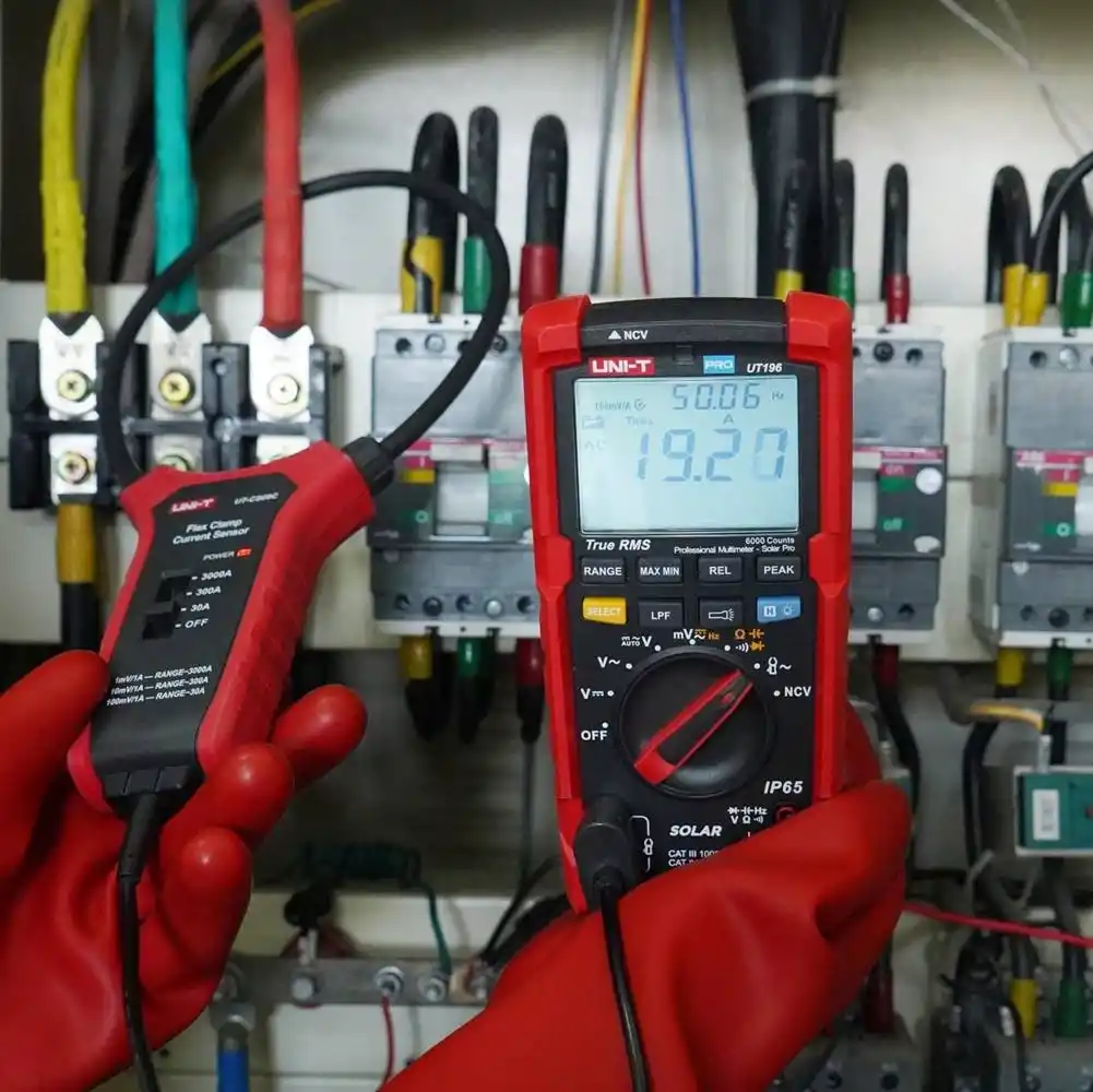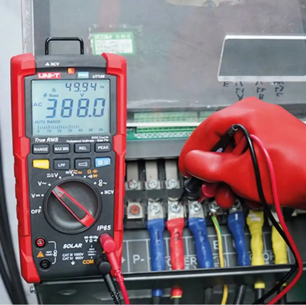 Uni-T UT196, özellikle fotovoltaik (güneş enerjisi) sistemlerin yüksek voltaj gereksinimleri için tasarlanmış, 1700V DC ölçüm kapasitesine sahip True RMS endüstriyel bir multimetredir.