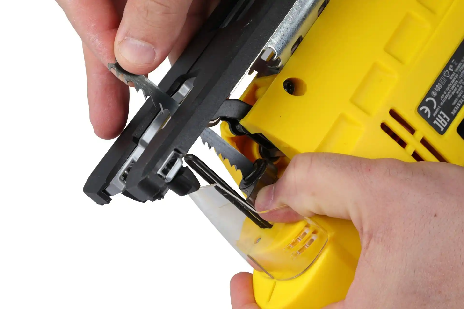 Kolay testere değişimi için mandallı mekanizma sistemi.
