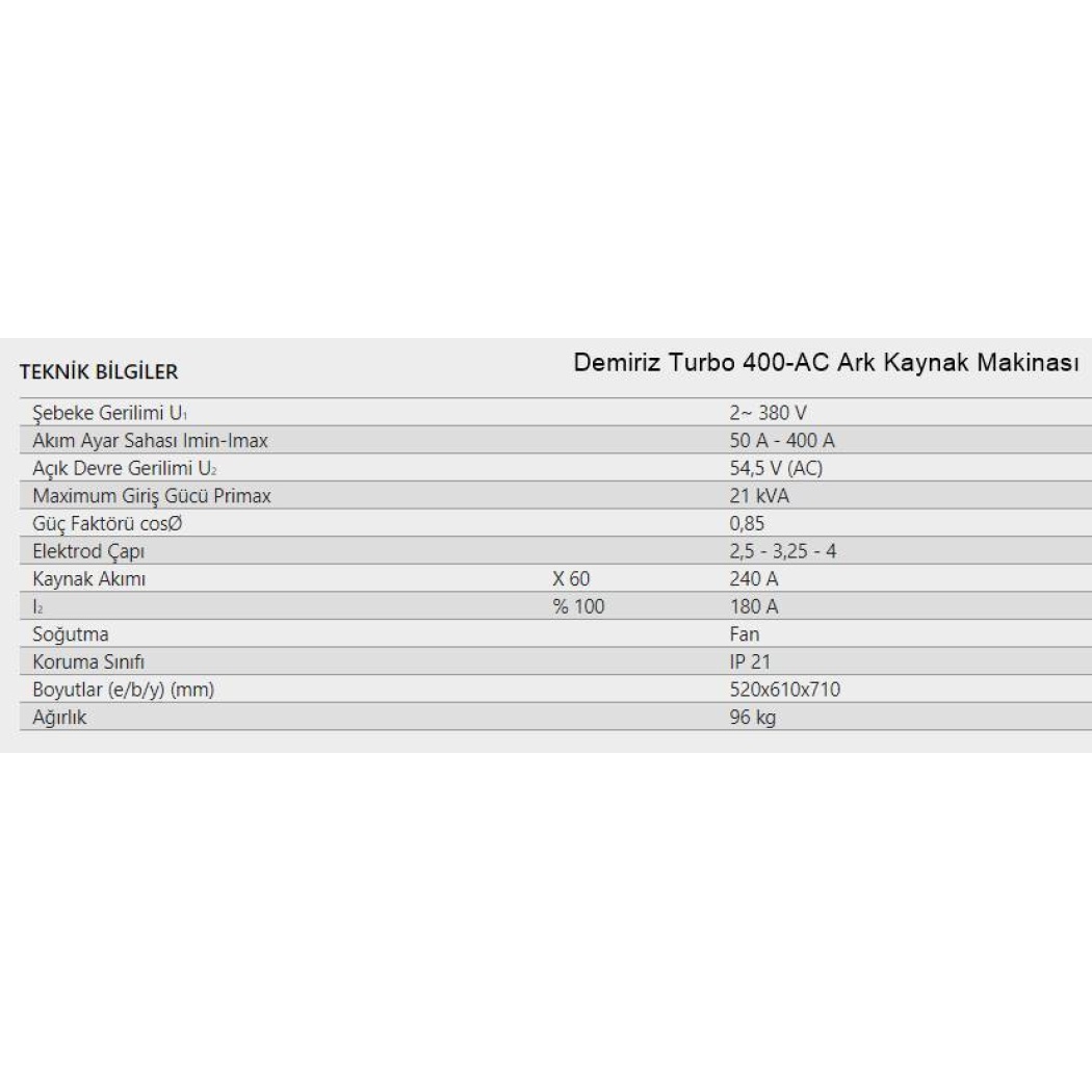 Demiriz Turbo 400-CA Ark Kaynak Makinası