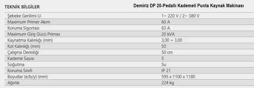 Demiriz DP 20-Pedallı Kademeli Punta Kaynak Makinası