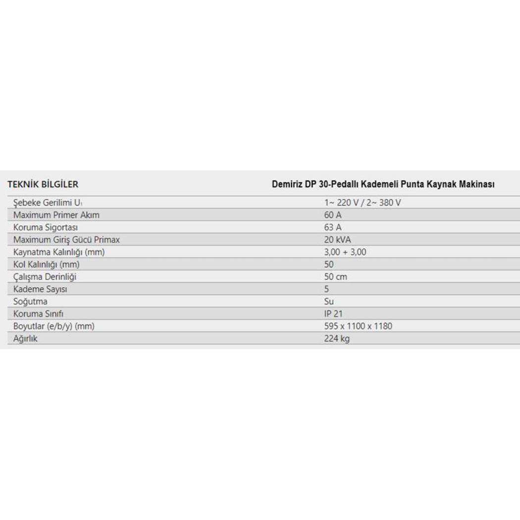 Demiriz DP 30-Pedallı Kademeli Punta Kaynak Makinası