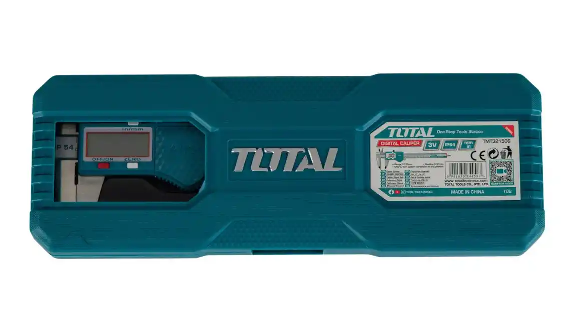 Total TMT321506 Dijital Kumpas , 0-150 mm ölçüm aralığı ve 0,01 mm okuma çözünürlüğüyle hassasiyet ve kullanım kolaylığı sunar. IP54 koruyucu muhafazaya sahip bu kumpas, toz ve sıçramaya dayanıklıdır ve zorlu çalışma ortamları için idealdir. Metrik ve inç sistemleri arasında her pozisyonda dönüşüm fonksiyonu, hızlı ve doğru ölçümler sağlar.