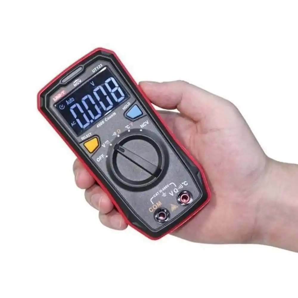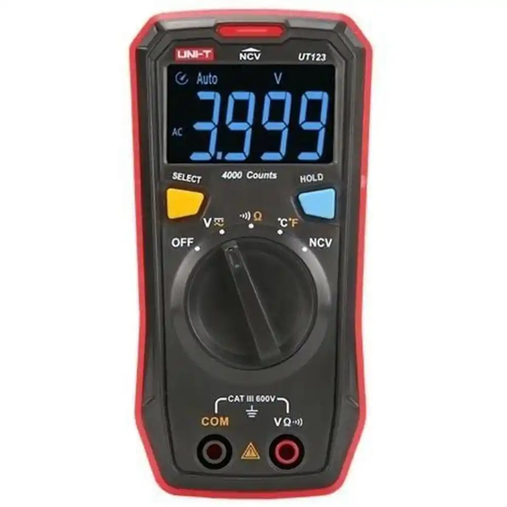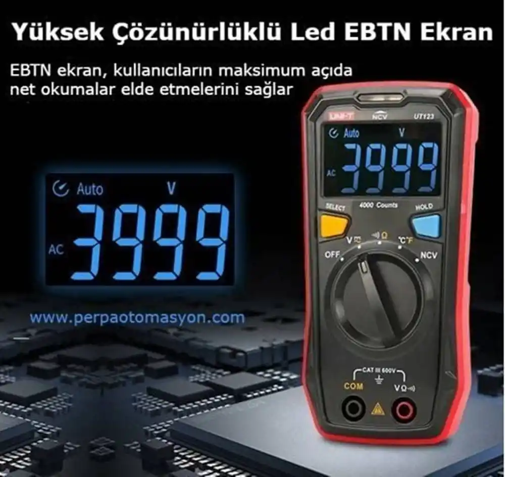 Unit UT123, elektriksel değerleri (voltaj, direnç, süreklilik) otomatik olarak tanıyan, ters ışıklı EBTN LED ekrana ve temassız gerilim algılama (NCV) özelliğine sahip yeni nesil bir akıllı ölçü aletidir.