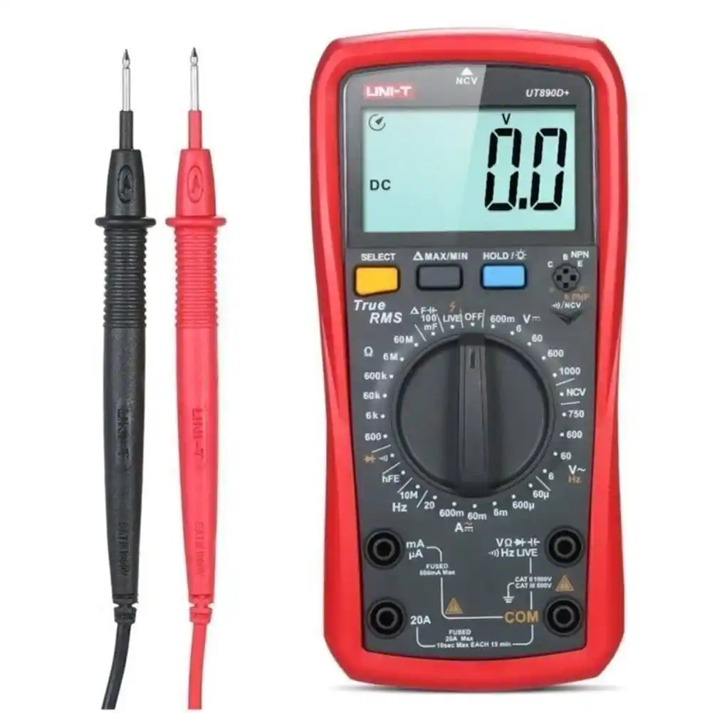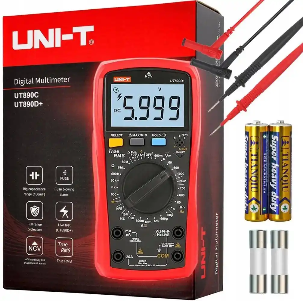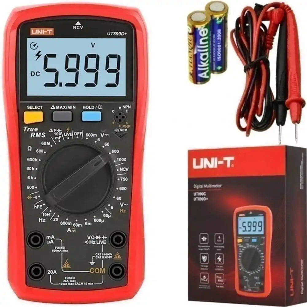 Uni-T UT890D+, karmaşık sinyallerde bile doğru sonuç veren True RMS teknolojisine sahip, 6000 sayımlı ekran çözünürlüğü sunan profesyonel bir dijital multimetredir.