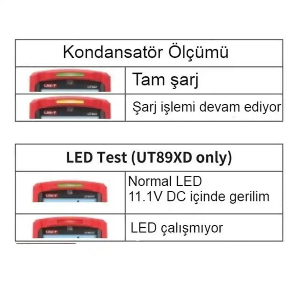 UT89X modelinde sıcaklık ölçümü varken, UT89XD modelinde sıcaklık yerine 12V'a kadar LED test etme fonksiyonu bulunmaktadır. Diğer tüm teknik özellikler aynıdır.