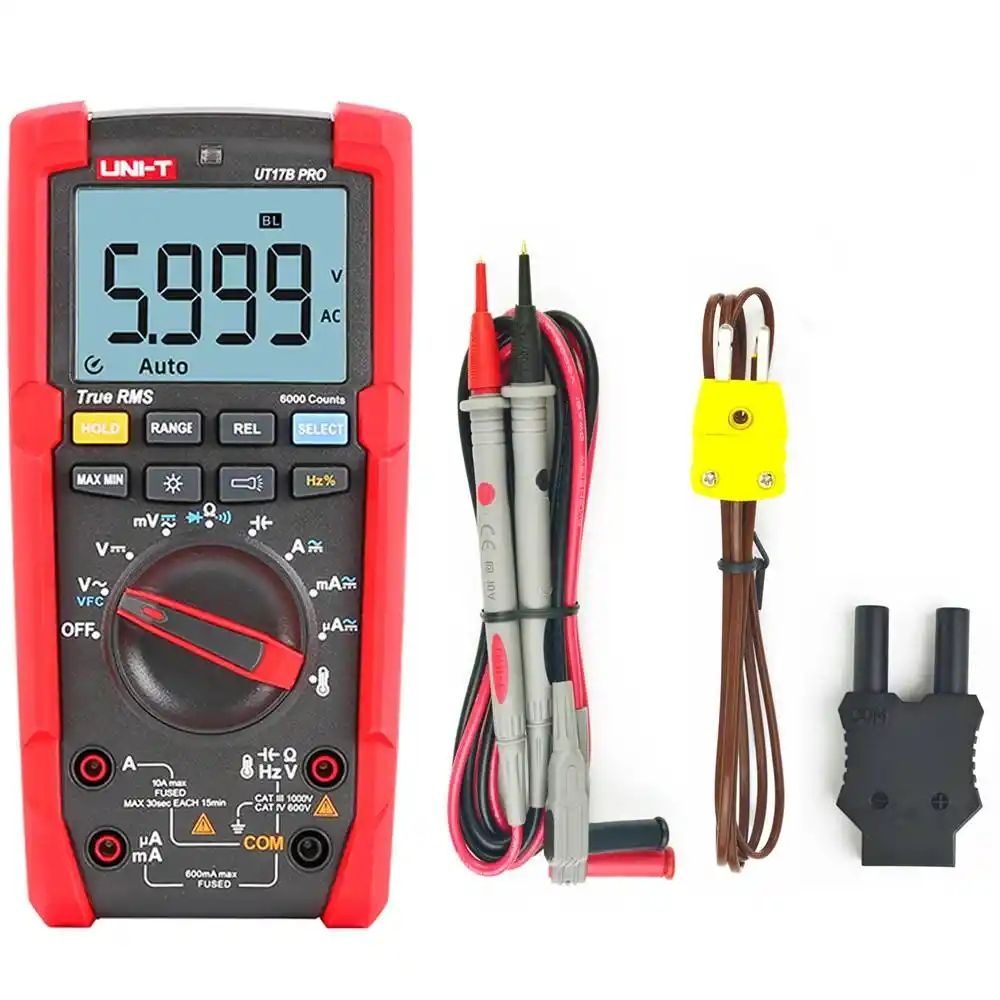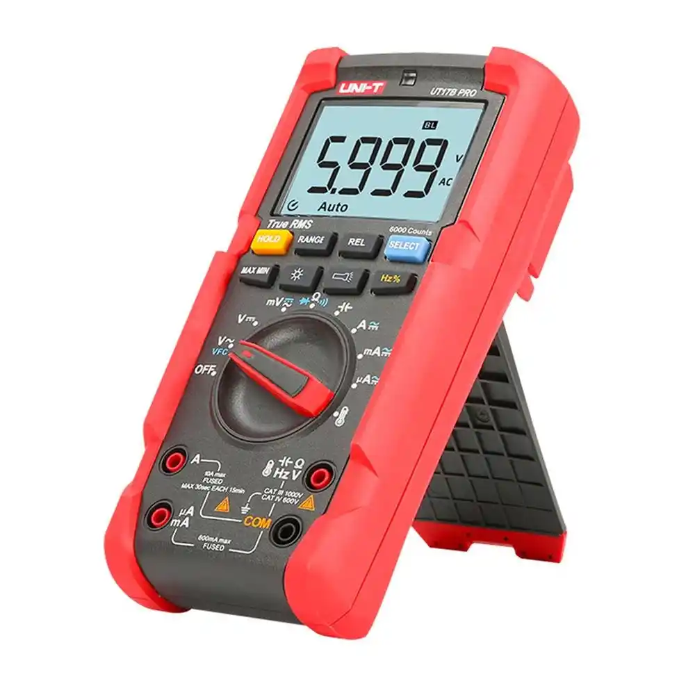 Uni-T UT17B Pro, endüstriyel tesislerdeki karmaşık sinyalleri True RMS teknolojisiyle %0.5 temel doğruluk payıyla ölçen, 1000V AC/DC kapasiteli profesyonel bir dijital multimetredir.