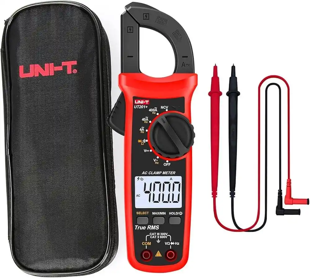 Uni-T UT201+, devre hattını kesmeden 400 Amper'e kadar AC akımı ölçebilen, True RMS teknolojisi sayesinde gürültülü sinyallerde bile doğru sonuç veren akıllı bir pens ampermetredir.