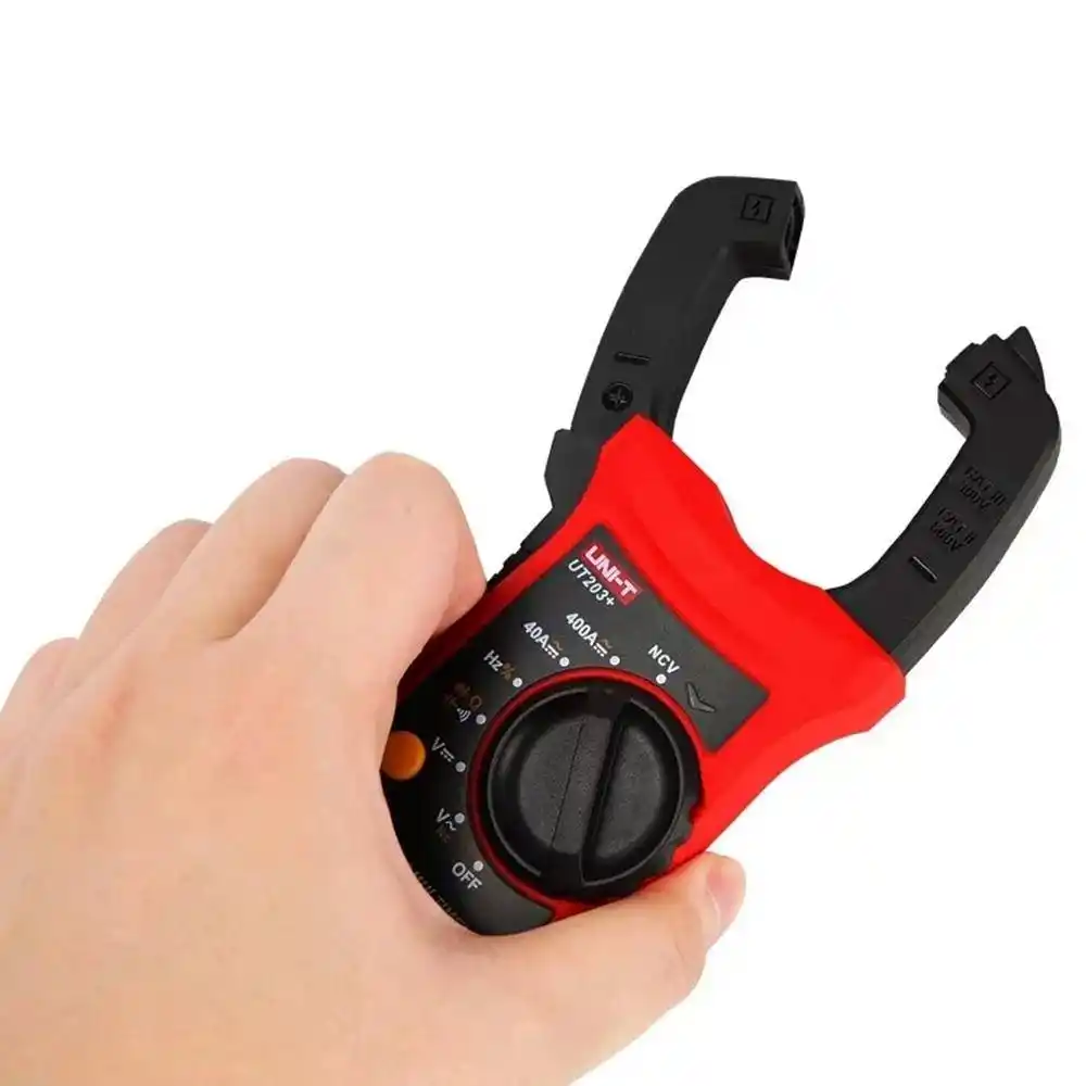 Uni-T UT203+, hem AC hem de DC akımı devre kesmeden ölçebilen, True RMS donanımlı ve 4000 sayım çözünürlüğe sahip endüstriyel sınıf bir dijital pens ampermetredir.