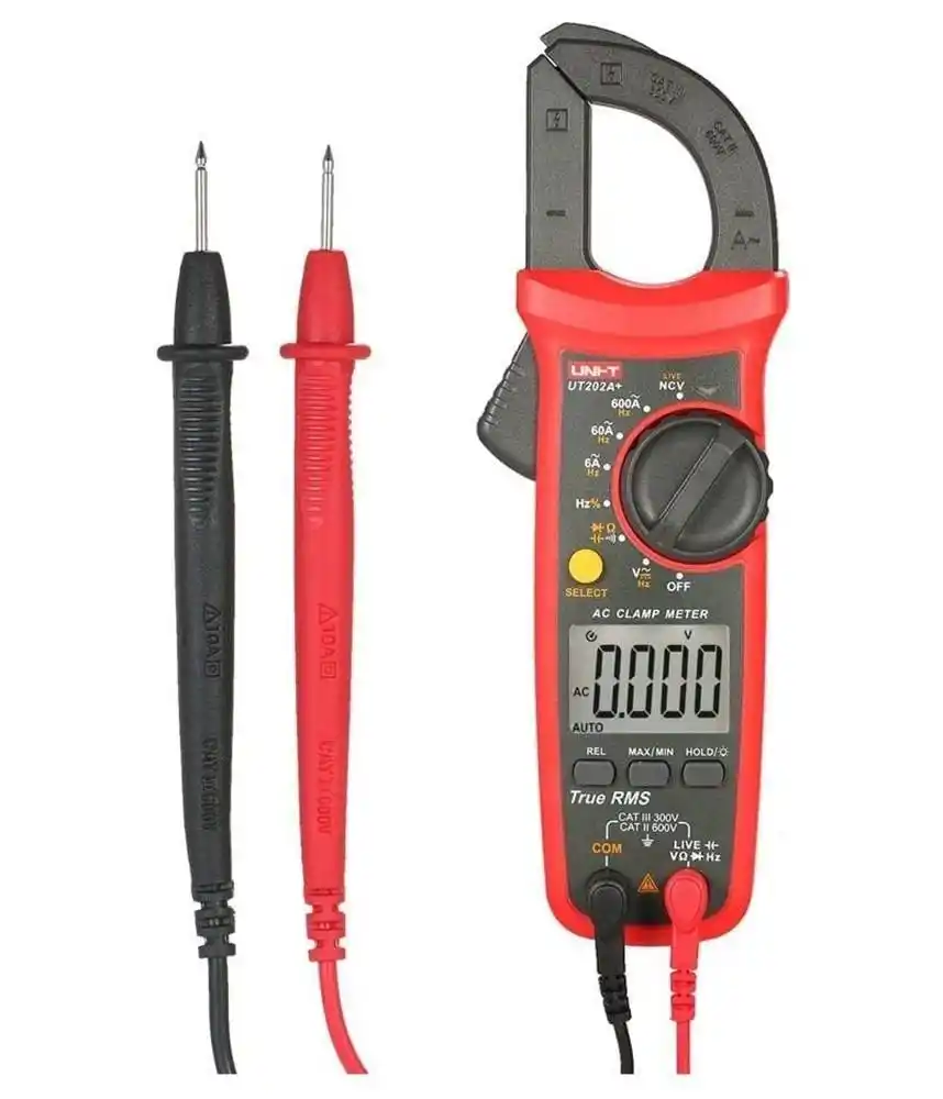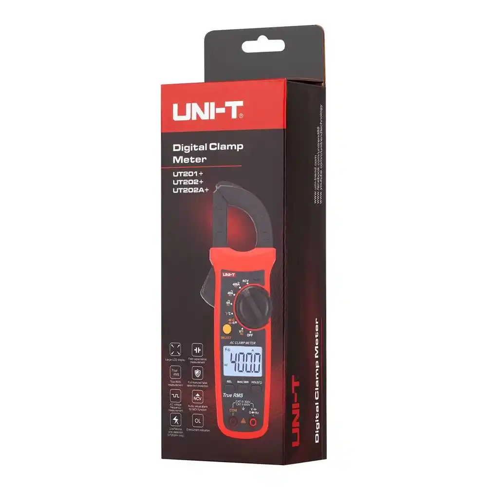 Uni-T UT202A+, elektrik devrelerini kesmeden veya kabloları soymadan, indüksiyon yöntemiyle 600 Amper'e kadar AC akım ölçümü yapabilen, True RMS teknolojisine sahip dijital bir pens ampermetredir.