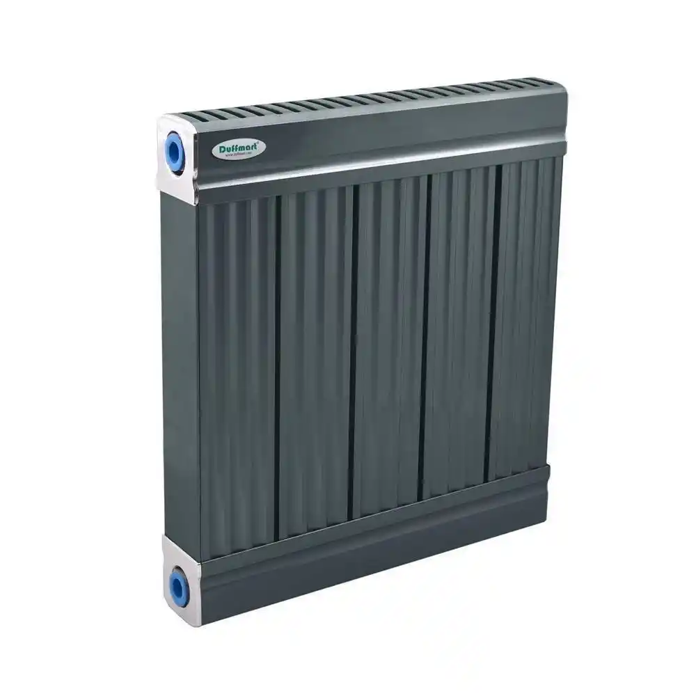 Duffmart Premio alüminyum radyatörler yüksek verimde ısı transferine uygun tasarlanmıştır. 1000 Kcal/h ısıyı 0,64 litre su ile vermektedir. Bu değer ile en az su ihtiyacı gösteren üründür. Panel radyatörlerde 1000 Kcal/h ısı için kullanılan suyun ise %20’sine karşılık gelmektedir. Bu ise pompa yatırımını asgari seviyelere çekmekte, katılan inhibitör miktarını azaltmakta ve elektrik sarfiyatını önemli miktarda düşürmektedir.