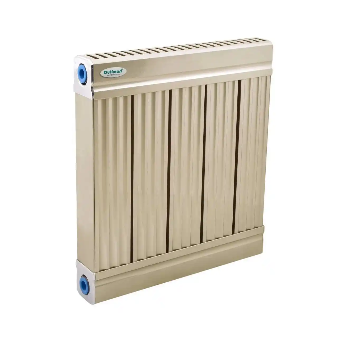 Duffmart Premio alüminyum radyatörler yüksek verimde ısı transferine uygun tasarlanmıştır. 1000 Kcal/h ısıyı 0,64 litre su ile vermektedir. Bu değer ile en az su ihtiyacı gösteren üründür. Panel radyatörlerde 1000 Kcal/h ısı için kullanılan suyun ise %20’sine karşılık gelmektedir. Bu ise pompa yatırımını asgari seviyelere çekmekte, katılan inhibitör miktarını azaltmakta ve elektrik sarfiyatını önemli miktarda düşürmektedir.