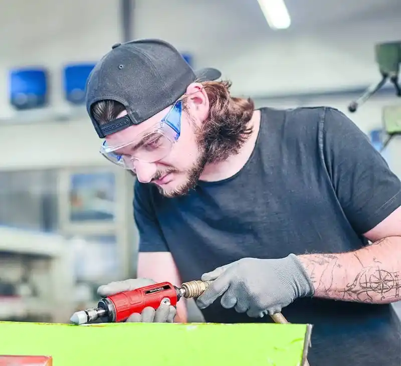 Taşlama, parlatma, kazıma ve çapak alma için ideal bir pnömatik alettir.