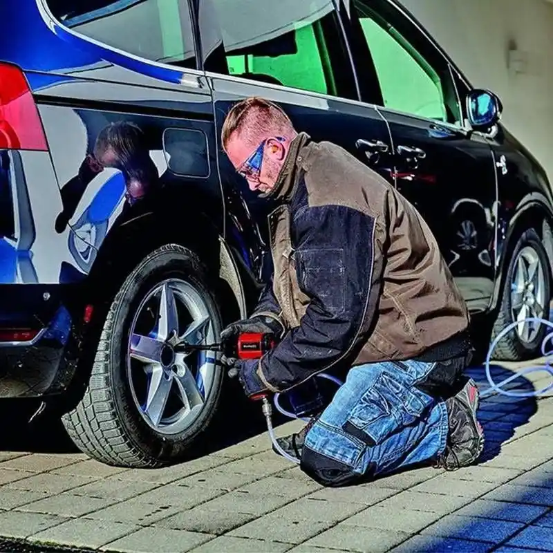 Einhell TC-PW 610 Havalı Darbeli Somun Sıkma, evde, atölyede ve garajda kullanıma uygun güçlü bir makinadır. Somun sıkmanın maksimum torku 610 Nm'dir.Yüksek tork sayesinde lokma montaj işleri için de uygundur. Kaymaz, kauçuk kaplı sap, durum ne olursa olsun çalışmanın güvenli ve rahat olmasını sağlar. Saat yönünün tersine (bir adım) ve saat yönünde (üç adım) çalıştırma özelliğine sahip pnömatik somun sıkma, çeşitli alanlarda kullanıma uygundur. Somun sıkmayı, iç çapı 9 milimetre veya daha fazla olan bir hortum ile kullanılarak yüksek bir performans alabilirsiniz. Maksimum çalışma basıncı 6,3 bar, maksimum diş boyutu 19 milimetredir. Einhell TC-PW 610 Havalı Darbeli Somun Sıkma ürünü standart 8/10/11/13/17/19/21/22/24/27 milimetrede 10 soket ve 1 küçük yağ şişesi ve 1 nipel ile birlikte gelir. Ayrıca 125 mm lik uzatma da ürüne dahildir. TC-PW 610 pnömatik somun sıkma kullanıma hazır kurulumu kolaydır. Ergonomik bir taşıma ve saklama kutusunda teslim edilir.