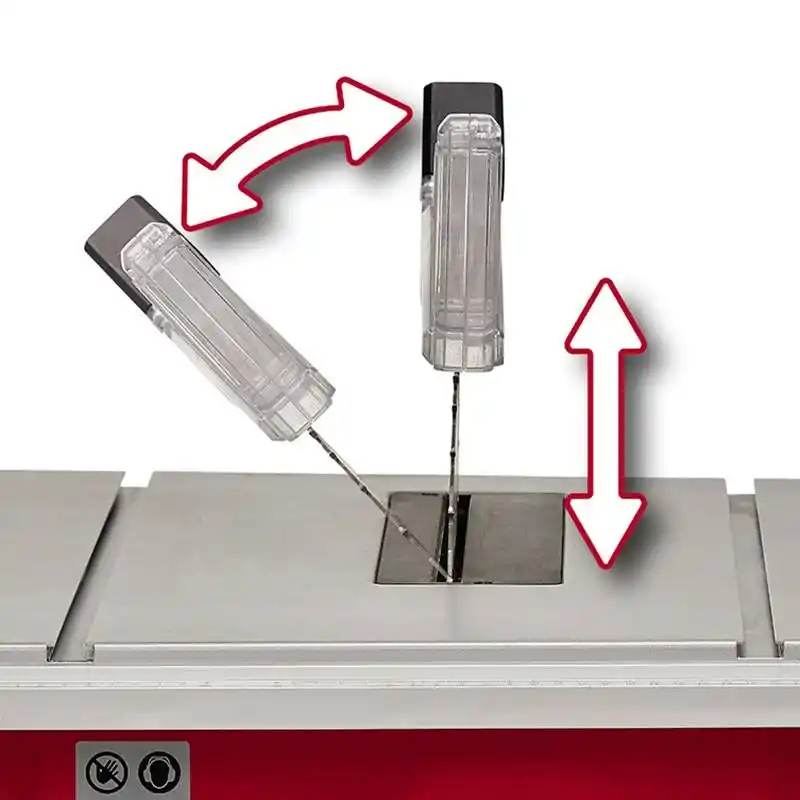 Cihaz, sağlam bir alt sehpa ile birlikte gelir; bu sayede ekstra bir masaya ihtiyaç duymadan ergonomik bir çalışma yüksekliği sunar. Bıçağın hem yüksekliğini hem de açısını kolayca ayarlamanıza olanak tanıyan 2'si 1 arada mekanizması, farklı projeler arasında hızlı geçiş yapmanızı sağlar. Kompakt yapısına rağmen yüksek torklu motoruyla en sert ahşapların bile üstesinden gelir.