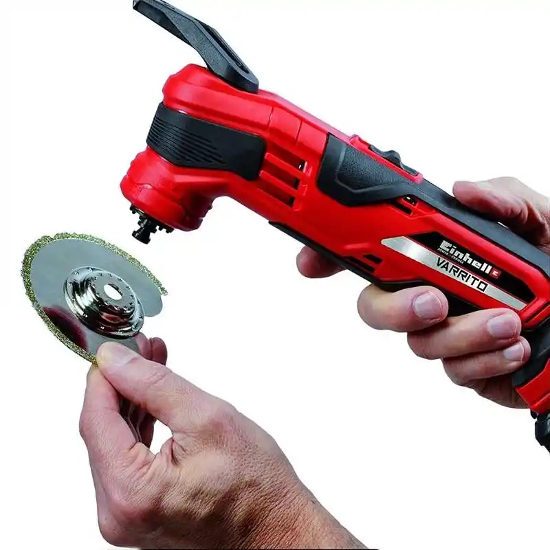 Einhell TE-MG 18 Li Solo Akülü Varrito Raspalama, çok fonksiyonlu ve yüksek kaliteli bir ürün olup geniş kapsamlı özellikleriyle kesme, zımparalama veya kazıma gibi işlerinizi kolayca yapabilirsiniz. Hızlı bırakma mandalı ile aletsiz şekilde kolayca kullanılan aksesuarı değiştirebilir manyetik ortalama özelliği ile hızlıca ve kolayca aletinizi hazır duruma getirebilirsiniz. Einhell TE-MG 18 Li Solo Akülü Varrito Raspalama elektronik hız kontrolü ile her çeşit uygulama için optimal güç almak için ayarlanabilir. Güvenli ve konforlu bir çalışma için yumuşak tutamak bulunur. Delta zımpara plakası, 9 adet zımpara kağıdı (3*P60/3*P80/3*P120), Kazıyıcı, Plastik ve ahşap için HCS dalma bıçağı, Metaller için BIM dalma bıçağı ürüne dahildir. Einhell TE-MG 18 Li Solo Akülü Varrito Raspalama ürününde şarj cihazı ve akü bulunmamaktadır. İhtiyacınız olan ve dilediğiniz kapasitedeki aküleri ve şarj cihazını ayrı ayrı satın alabilir ya da daha önce satın aldığınız Power X-Change ailesi ürünlerinde bulunan akü ve şarj cihazlarını kullanabilirsiniz. Böylece her cihaz için tekrar tekrar akü ve şarj cihazı almak zorunda kalmaz ve tasarruf edersiniz.