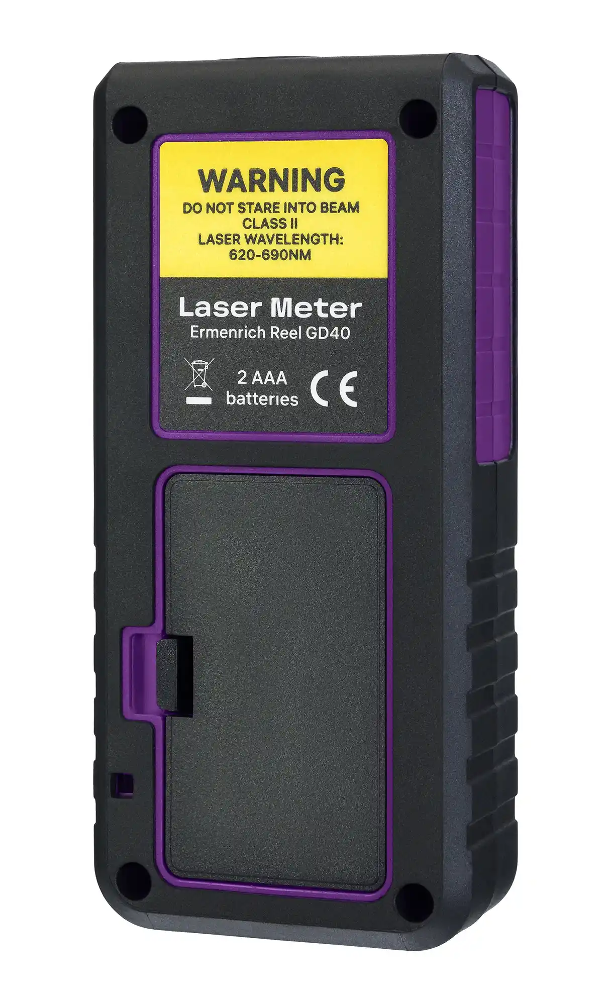 Ermenrich Reel GD40'ın Pisagor teoremi özelliği, lazer noktalardan birine yönlendirilemiyorsa dolaylı parametrelere dayalı olarak iki nokta arasındaki mesafeyi otomatik olarak hesaplamak için kullanılabilir. Cihaz 2 adet AAA pil ile çalışır. Bir pil seti 5000'den fazla ölçüm için yeterlidir. Ergonomik tasarım ve 3 satırlı LCD ekran, zorlu çalışma ortamlarında konforlu kullanım sağlar. Pil gücünden tasarruf etmek üzere, lazer ve cihazın kendisi için bir otomatik kapanma işlevi ve ayrıca düşük pil durumu göstergesi bulunmaktadır.