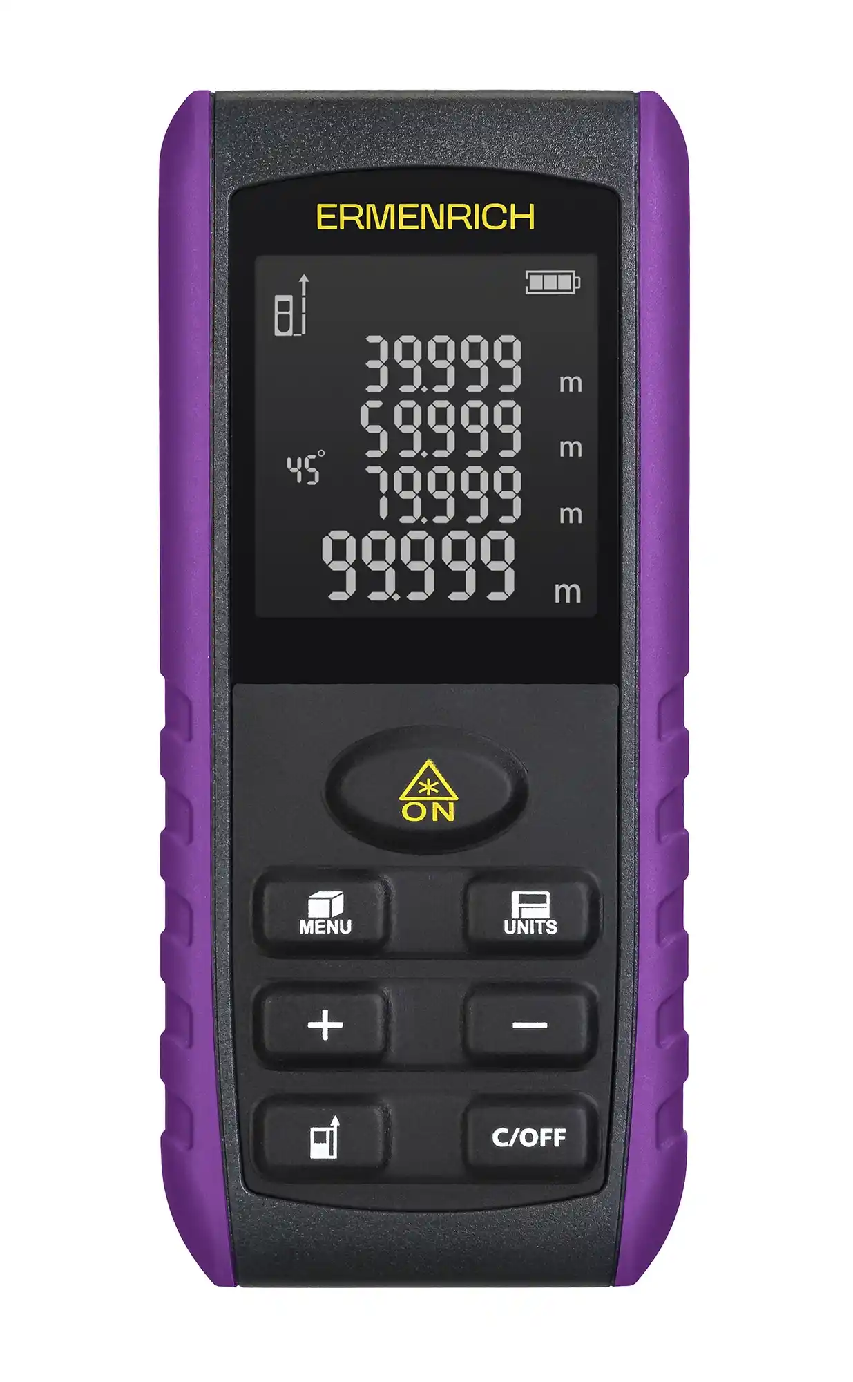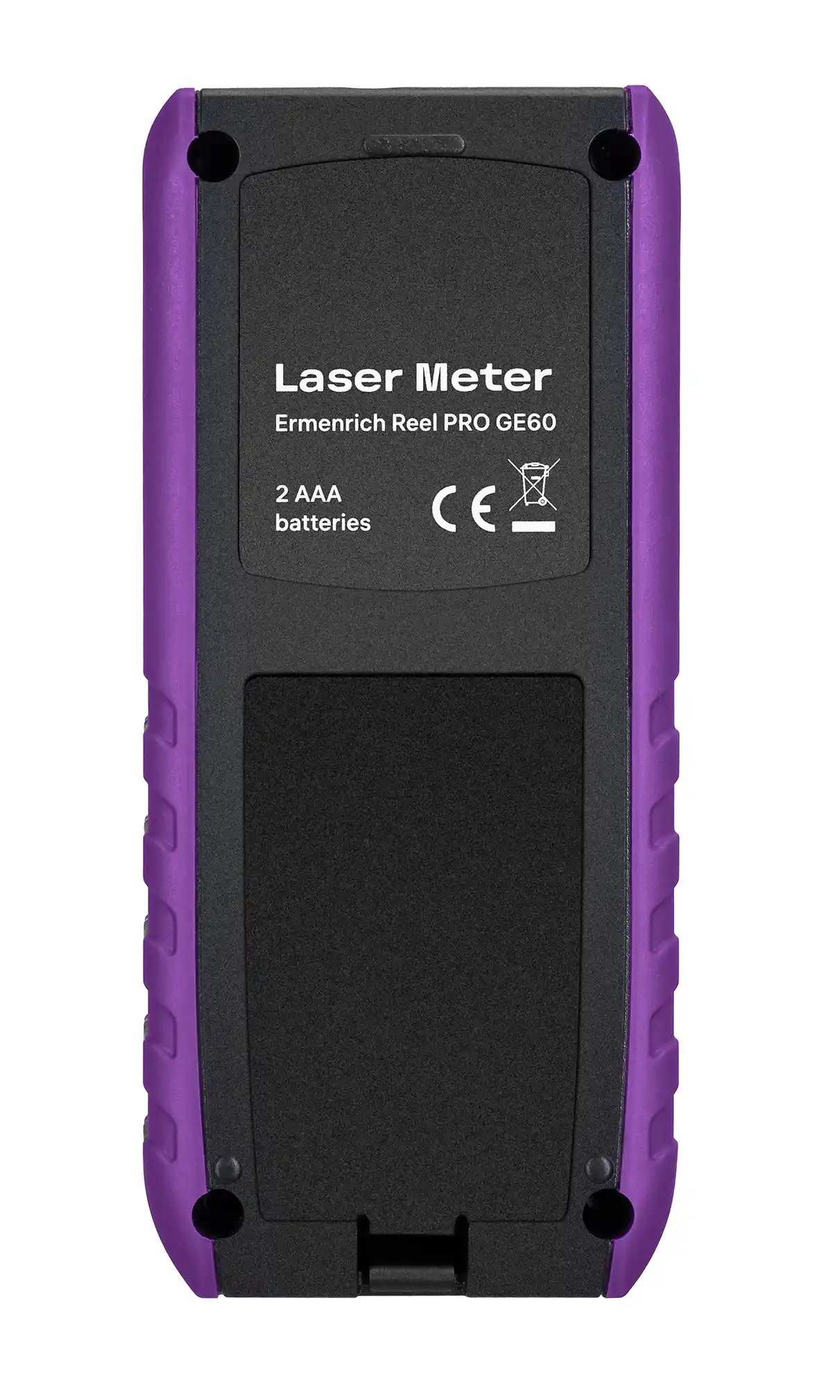 Ermenrich Reel PRO GE60 lazer metre, 0,05 ila 60 metre aralığında hassas mesafe ölçümleri yapmanızı; oda ve nesnelerin açılarını, alanını ve hacmini ölçmenizi sağlar. Cihazın önemli bir avantajı Pisagor teoremi özelliğidir: Metreyi istenen noktaya yerleştirmenin mümkün olmadığı veya lazerin yolunda bir engel bulunduğu durumlarda, metrenin mesafeyi hesaplayacağı iki ölçüm daha yapılması yeterlidir.