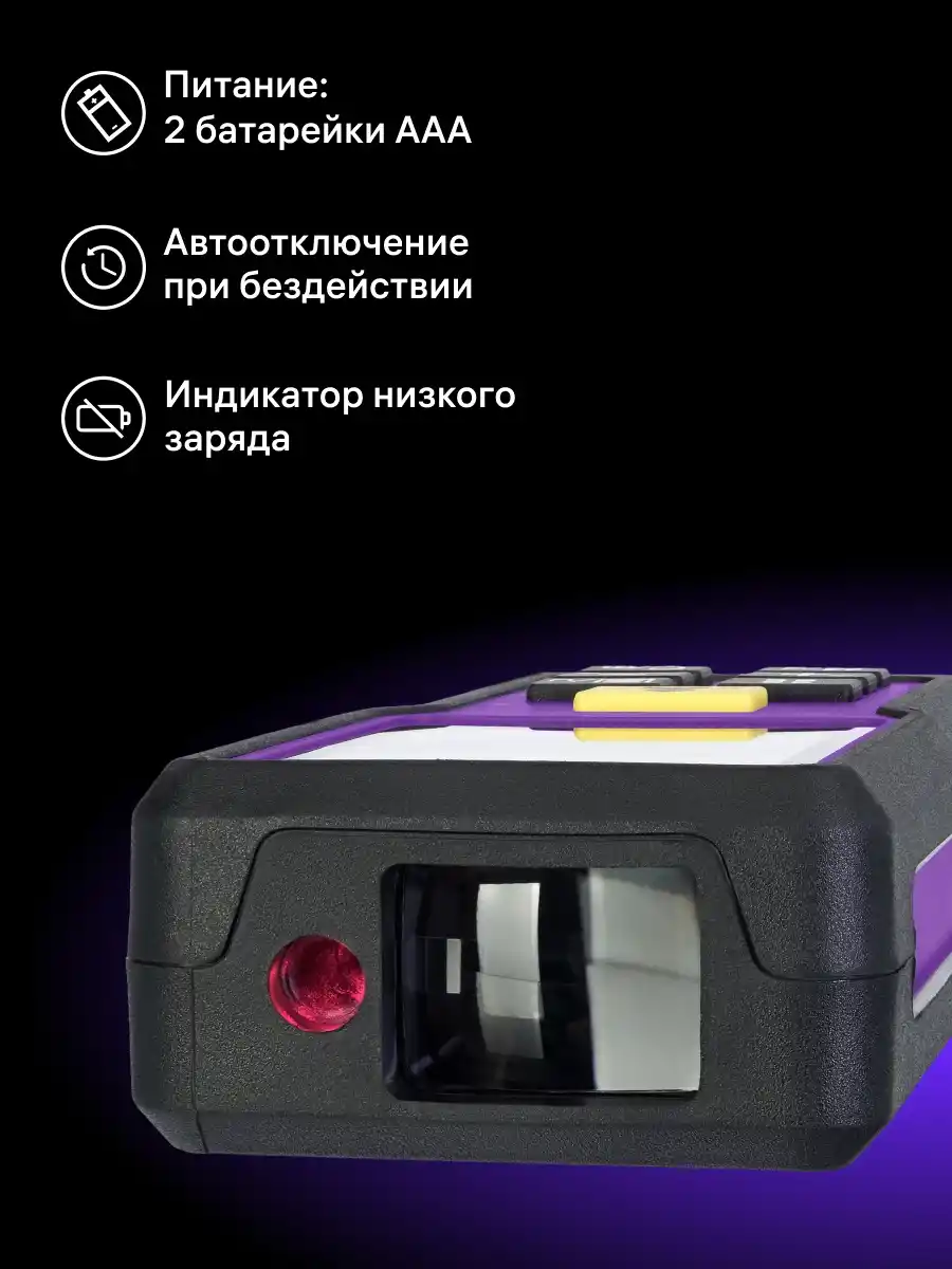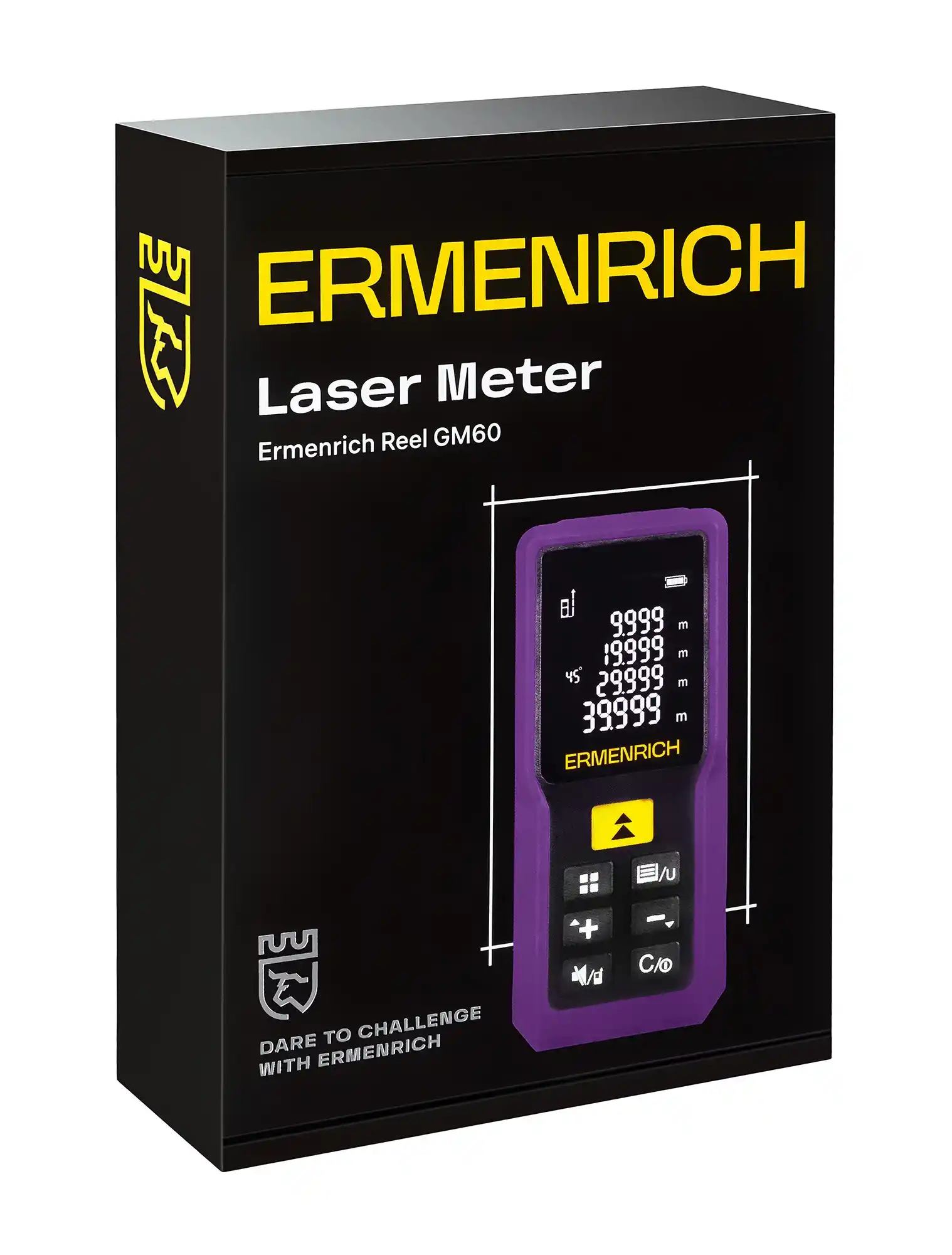 Ermenrich Reel PRO GM60, kompakt tasarımı ve 4 satırlık geniş ekranı sayesinde kullanıcı dostudur. Tek mesafe ölçümü ve sürekli ölçüm modlarının yanı sıra birkaç ölçüm birimi de mevcuttur. Profesyoneller sessiz modu takdir edecektir – sesli uyarıları kapatarak sessizlik içinde çalışabilirsiniz. Cihaz 2 adet standart AAA pil ile çalışır, bir pil seti 5000'den fazla ölçüm yapar. Güçten tasarruf etmek için, lazerin ve cihazın kendisinin otomatik kapanma işlevi bulunmaktadır. Cihazın geçmiş kaydı özelliği, büyük miktarda veri depolayabilir – 100 grup.
