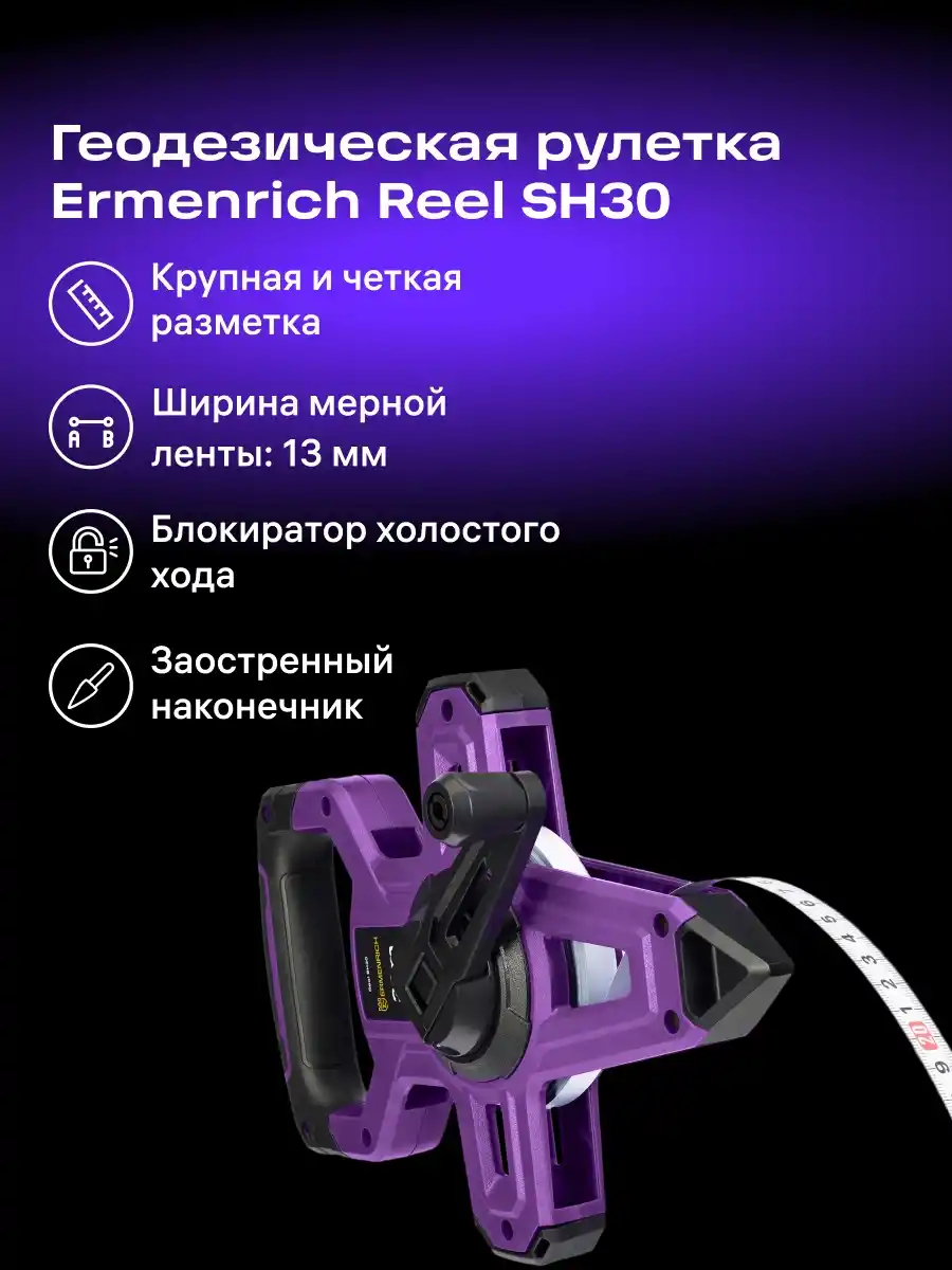 Ermenrich Reel SH30 metre karmaşık arazi yapısına sahip sahalarda çalışırken kırılmalara karşı dayanabilen aşınmaya karşı dirençli fırçalanmış çelikten imal edilmiştir. Metre darbeye karşı dayanıklı ABS plastikten üretildiği için dayanıklıdır. Yan kısımlardaki kauçuk kaplı yüzey kazayla düşürmelere karşı metreyi koruyacaktır.