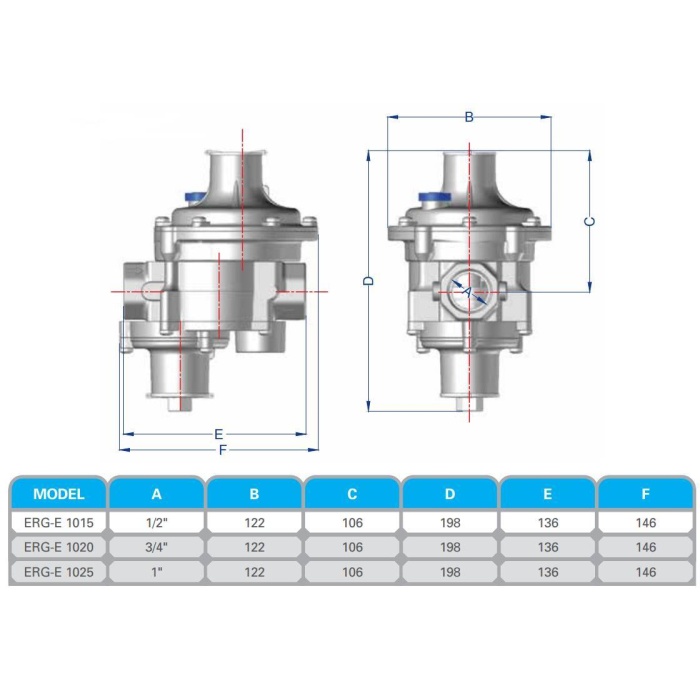 ERG-E serisi gaz basınç regülatörleri maksimum 1 bar giriş basıncını 16 ile 150 mbar arasında istenilen çıkış basıncına düşürmek için gaz hatlarında kullanılır. Çıkış basıncı aralığı değişik yay seçimi ile ayarlanabilir. Emniyet kapatmalı regülatör içerdiği emniyet kapama sistemi sayesinde, çıkış basıncının ayarlanan değerinin üstüne çıkması ya da altına inmesi halinde sistemde kullanılan cihazların güvenliğini sağlamak üzere otomatik olarak devreye girer ve hattaki gaz akışını keser