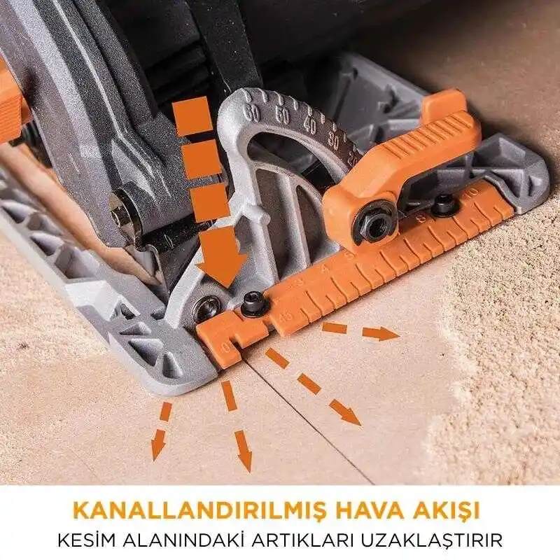 ● Hava akışı yönlendirmesi ve taban göstergeleri, kesim hattının net şekilde görünmesini sağlar.