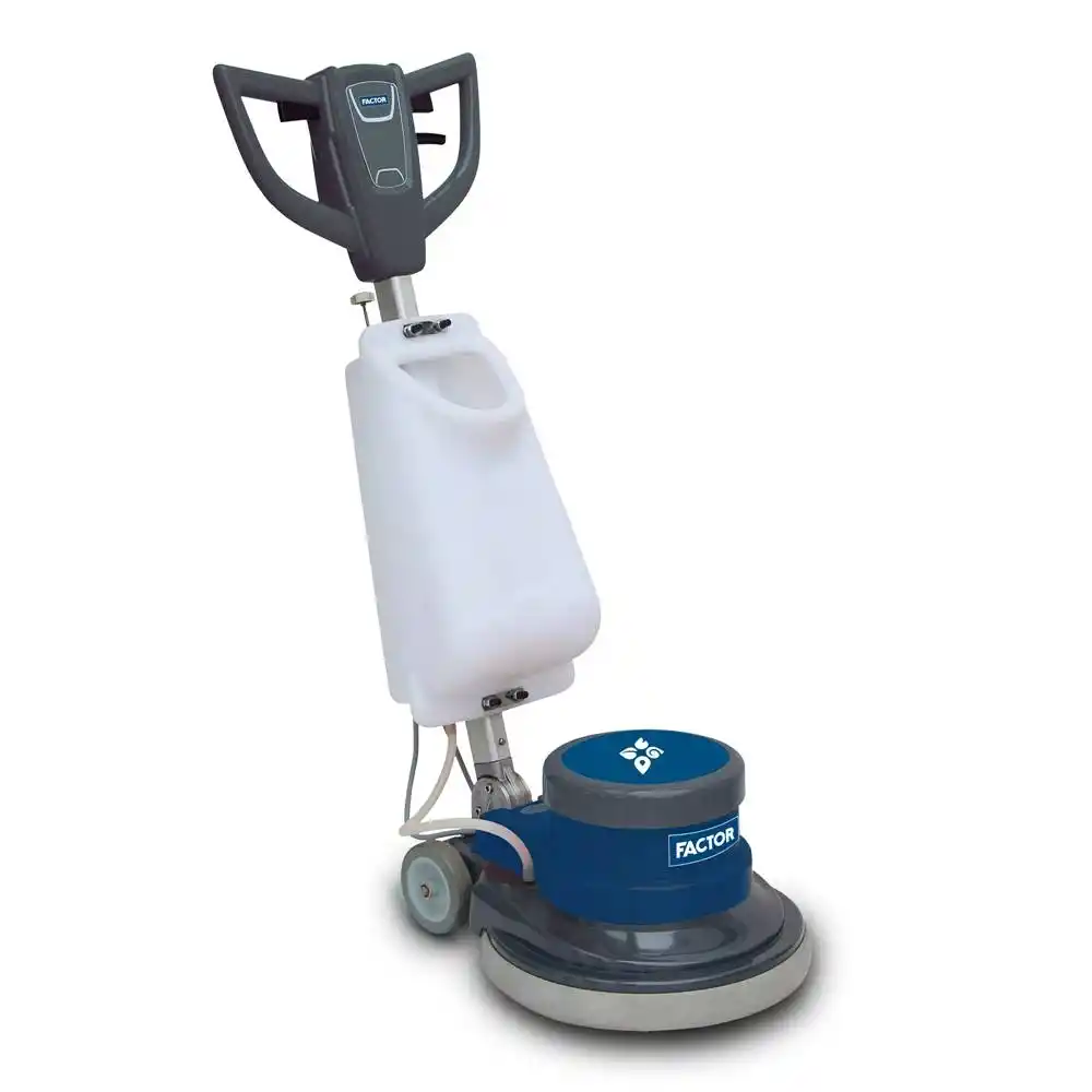 Factor PC120, sert zeminlerin cilalanması, fırçalanması ve halıların yerinde yıkanması için optimize edilmiş, yüksek torklu motoru ve dengeli gövde yapısıyla öne çıkan endüstriyel bir temizlik makinesidir.