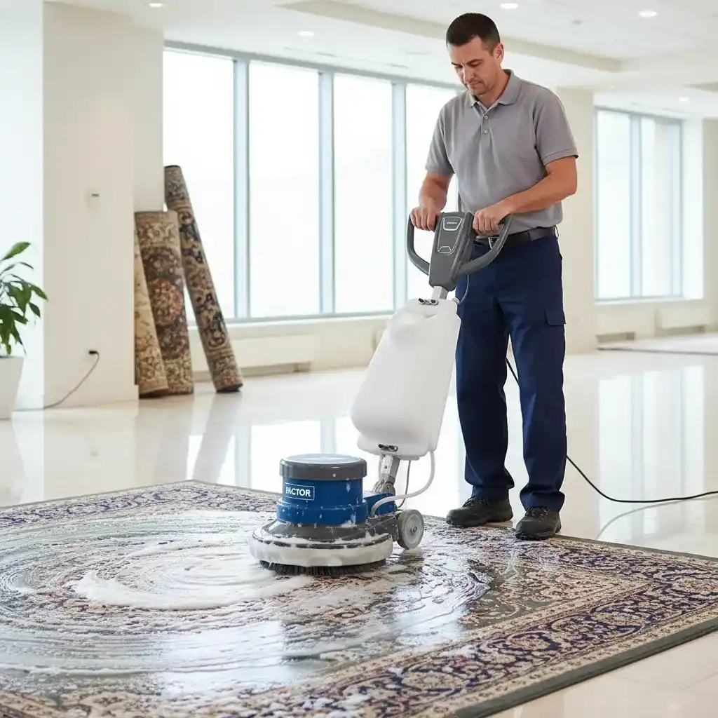 Halı yıkama işlemlerinde makineyi en düşük deterjan dozajıyla başlatın ve dairesel hareketleri içten dışa doğru genişleterek halı liflerinin her yöne taranmasını sağlayın.