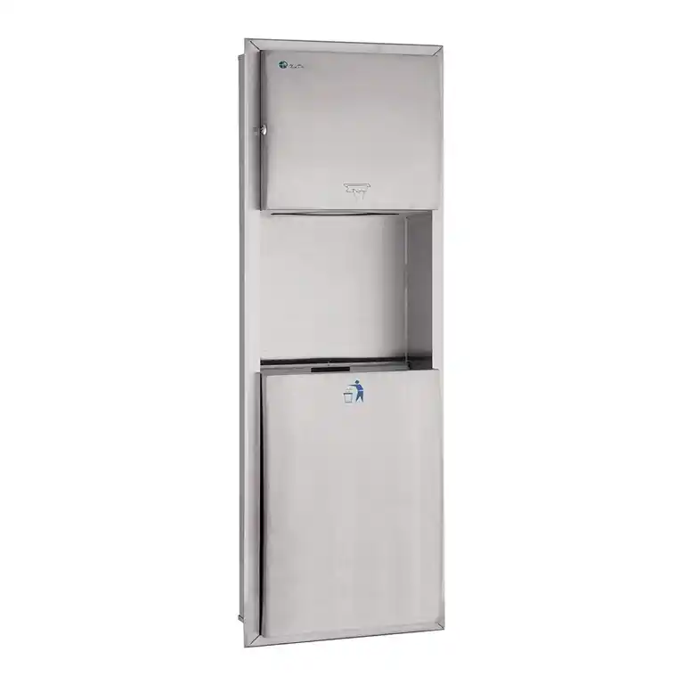 Ürünün tamamı AISI 304 kalite paslanmaz çelikten üretilmiş olup, üst bölümde Z veya V katlama kağıt havlular için kilitli bir hazne, alt bölümde ise gizli bir atık kovası barındırır. Ankastre yapısı sayesinde dışarıya minimum çıkıntı yapar, bu da mekanın daha geniş ve düzenli görünmesini sağlar.