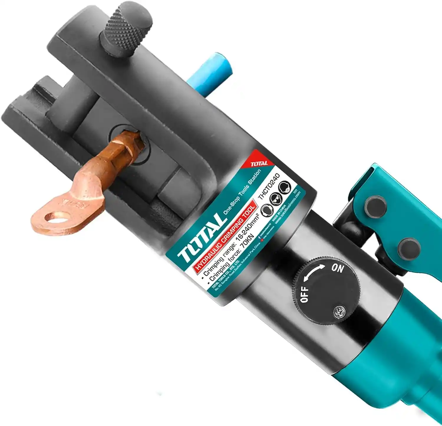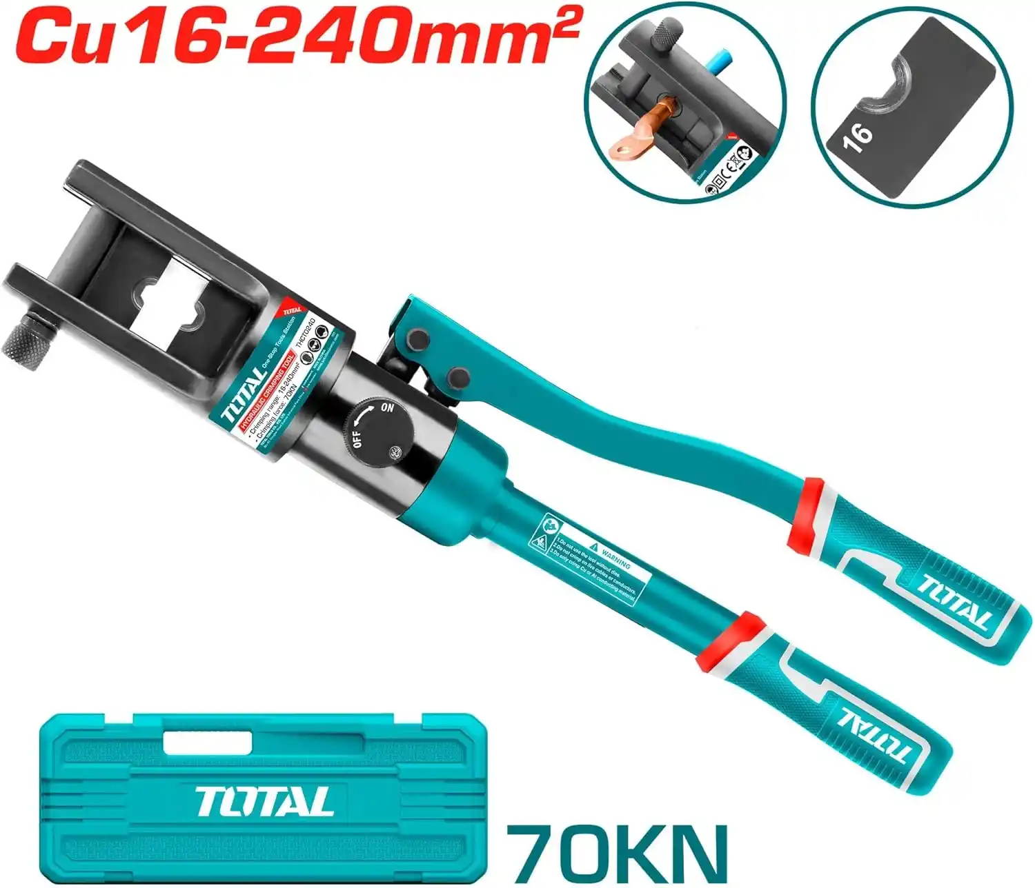 Total THCT0240, elektrik panosu montajları, büyük kesitli kablo uygulamaları ve sanayi tipi elektrik işlerinde güvenilir ve profesyonel bir çözümdür. Kolay taşınabilir yapısı ve yüksek sıkma kapasitesiyle hem sahada hem atölyede işinizi kolaylaştırır.